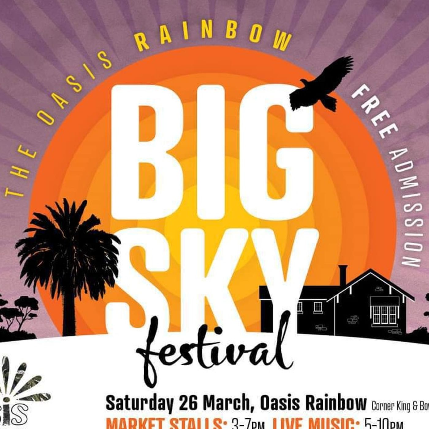 The Oasis Rainbow has been planning for the return of a major event for the Big Sky Festival at long last on Saturday 26 March at Rainbow, Victoria featuring Rich Davies and the Low Road, Danny Walsh Banned, Genevieve Chadwick, Jarrod Shaw, market stalls and mini silo art competitions in the region home of the Silo Art Trail