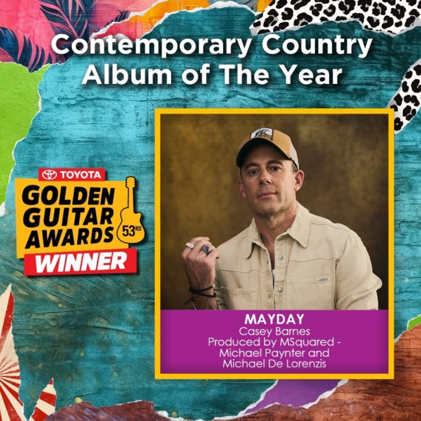 Casey took home the 2025 Golden Guitar for Best Contemporary Country Album after the huge success of his fifth studio album ‘Mayday’, his third Golden Guitar win to date. Driven by the fans, Mayday topped the ARIA Australian Country Album Charts on its first week of release. Hit singles such as Never Give Up On A Good Time, Boys Like Me and Summer Nights were taken on tour to celebrate what we now know as the 4th highest selling Aussie Country Album of 2024. Casey and his band also played their first gig of 2025 in front of a sold out Longyard Hotel as a part of the Tamworth Festival