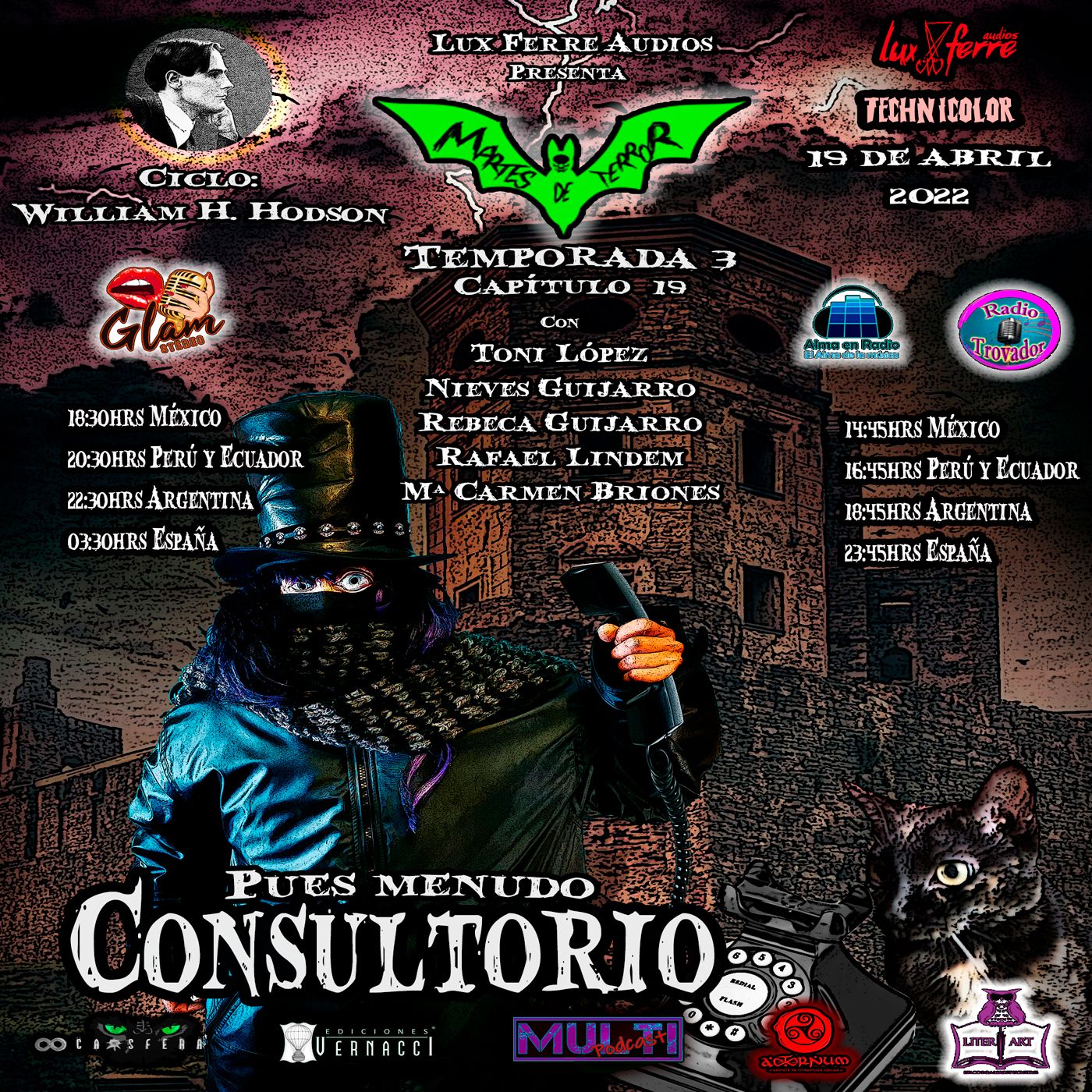 El terror tiene forma, en un cuento, un relato, un poema. Cada martes en Alma en Radio y en Radio Trovador, Lady Necrophage, Toni López, Evaristo «el epitafio», Don Notorio y el pequeño Trauma nos adentran en el terrorífico mundo del audio-relato.