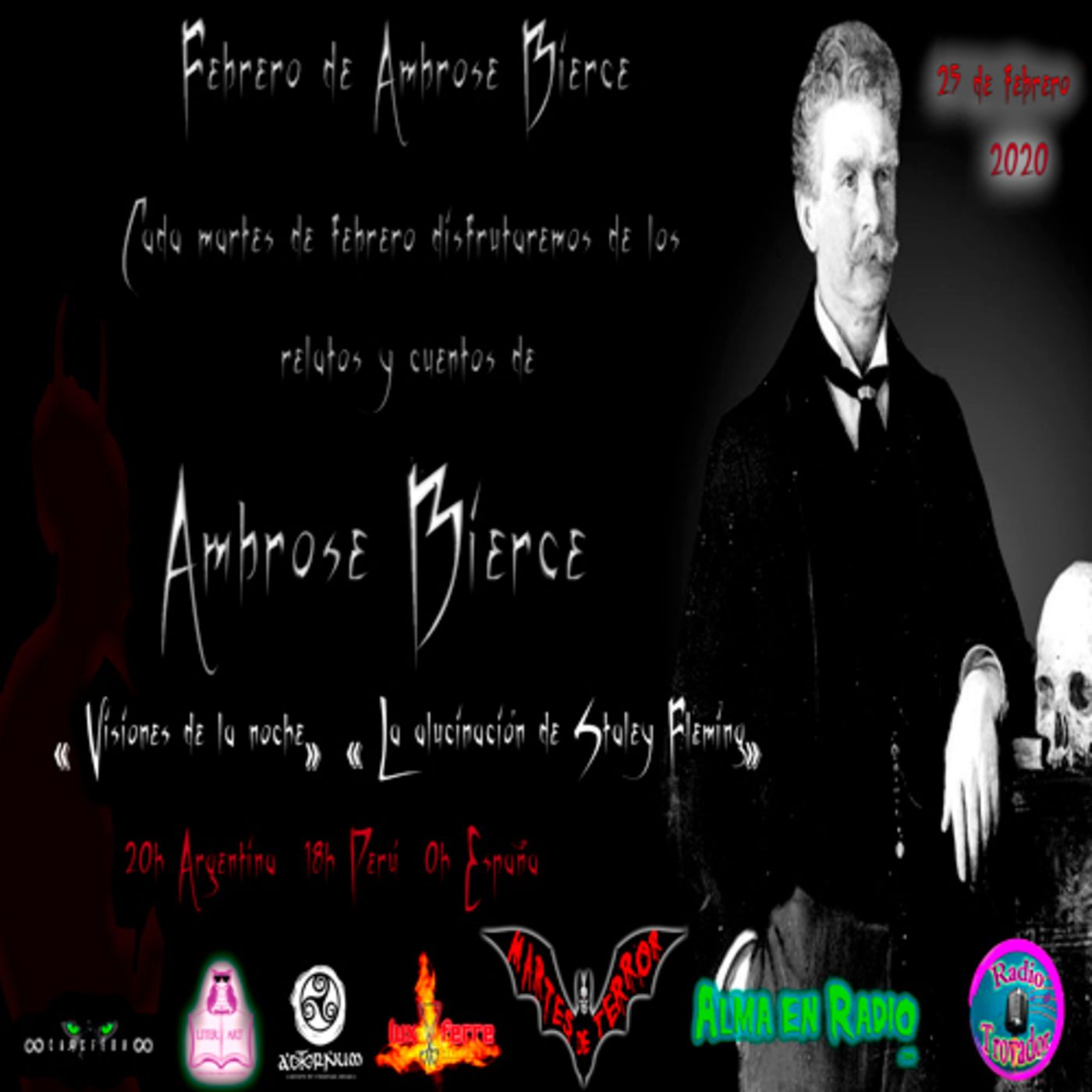 El terror tiene forma, en un cuento, un relato, un poema. Cada martes en Alma en Radio y en Radio Trovador, Lady Necrophage, Toni López, Evaristo «el epitafio», Don Notorio y el pequeño Trauma nos adentran en el terrorífico mundo del audio-relato.