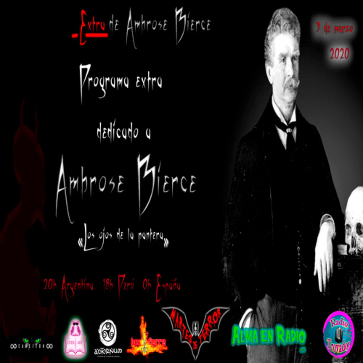 El terror tiene forma, en un cuento, un relato, un poema. Cada martes en Alma en Radio y en Radio Trovador, Lady Necrophage, Toni López, Evaristo «el epitafio», Don Notorio y el pequeño Trauma nos adentran en el terrorífico mundo del audio-relato.