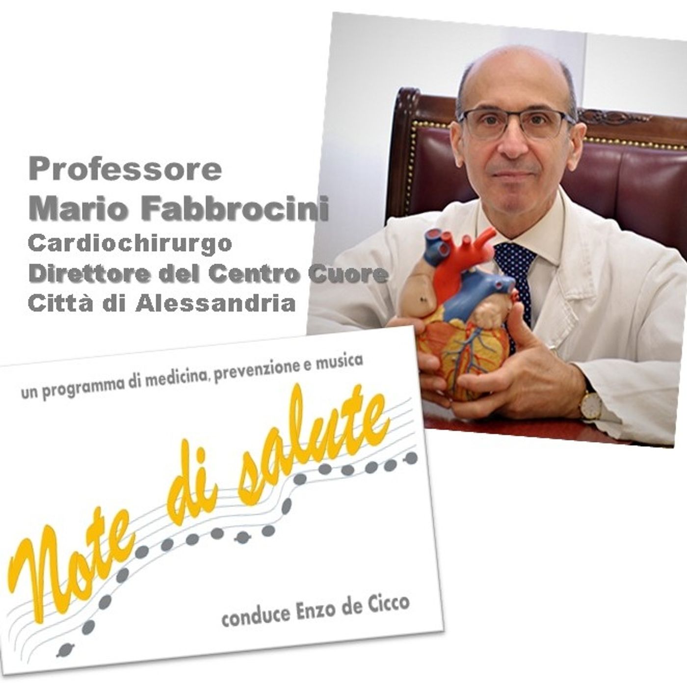 Gli aneurismi dell’aorta, le complicanze del diabete sull’apparato cardiocircolatorio, le cardiomiopatie sono gli argomenti di questa puntata di Note di Salute, il programma di prevenzione medicina e musica condotto dal dott. Enzo De Cicco che ospita il Prof. Mario Fabbrocini, cardiochirurgo, Direttore del Centro Cuore Città di Alessandria.