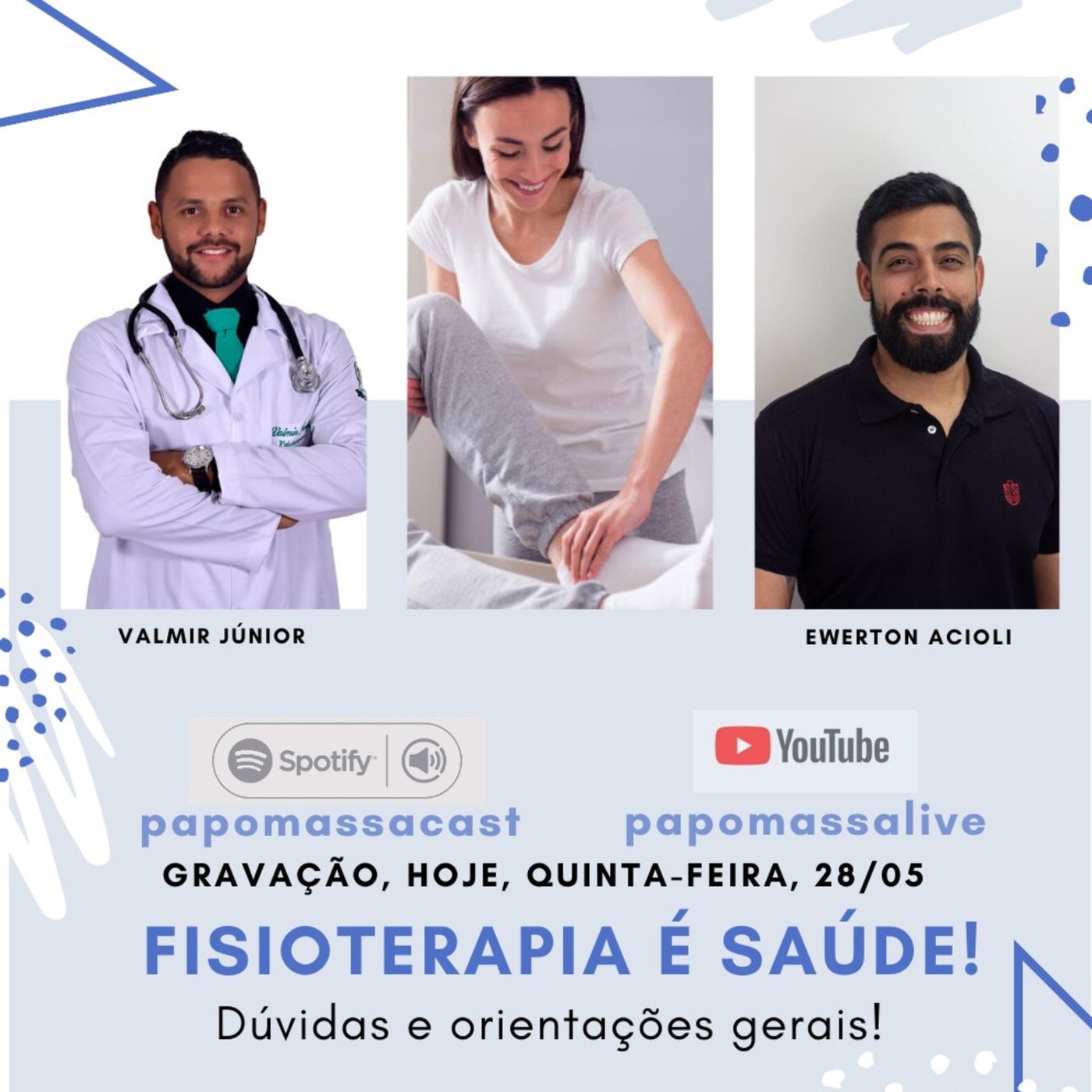 No papo massa descontraído, junto com Júnior e Acioli, dois gigantes da fisioterapia, desmistificando e dando dicas pra geral, sobre fisioterapia.