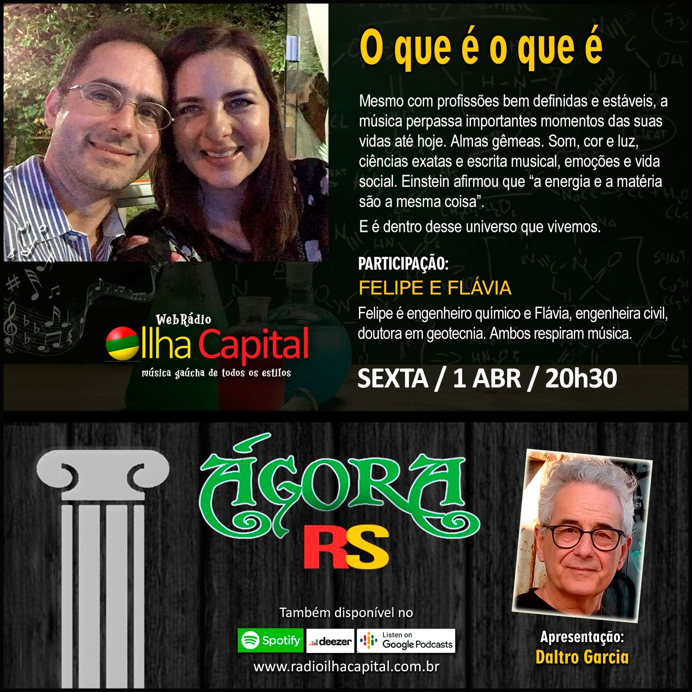 Participação: FELIPE e FLÁVIA - Engenheiro químico e engenheira civil, doutora em geotecnia, ambos respiram música.