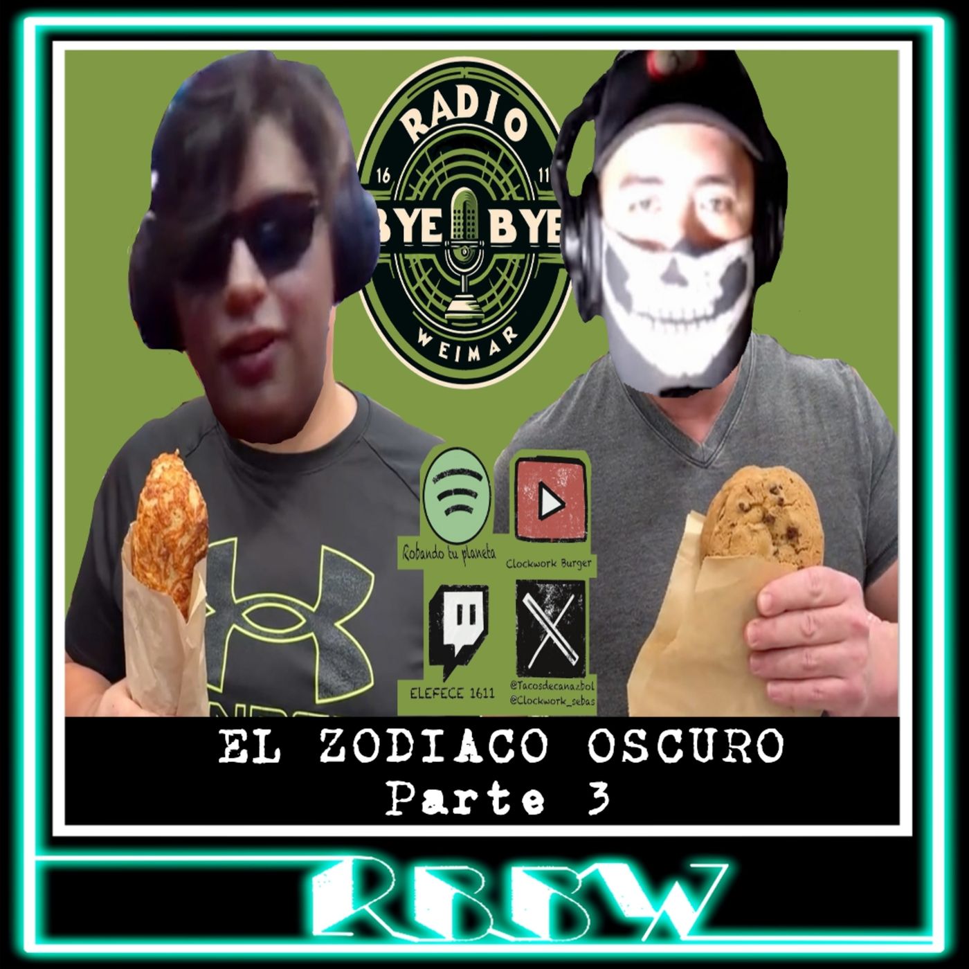 En este episodio de RBBW, en la 1er hora, El Sebas y Yo tratamos de hablamos sobre el Eclipse, El sol y su relacion con el Demiurgo, lo sucedido en Ecuador y El Joker II. En la 2da hora después del corte hablamos del tema del día el cual fue: EL ZODICACO OSCURO, para por fin darle final a este tema y continuar hablando del Diablo en los siguientes. Escuchen este experimento en cuanto a creación de contenido en los barrios bajos del internet. Radio Bye-Bye Weimar es un programa en donde yo juego a ser un locutor de radio, finjo tener una cabina y hablamos de un tema con los subscriptores del canal de Telegram llamado "RobandoTuPlaneta", hablamos en vivo por una o dos horas desarrollando el tema completamente random, solo para pasar el tiempo recordando lo que era antes la radio, los links de contacto pueden encontrarlos aquí : El Twitter de Sebas: @Clockwork_Sebas El Twitter de Oss: @Tacosdecanazbol El Instagram de Oss: @Oss1611 Canal de Telegram: https://t.me/RobandoTuPlaneta https://www.youtube.com/@ClockworkBurger https://www.twitch.tv/elefece1611