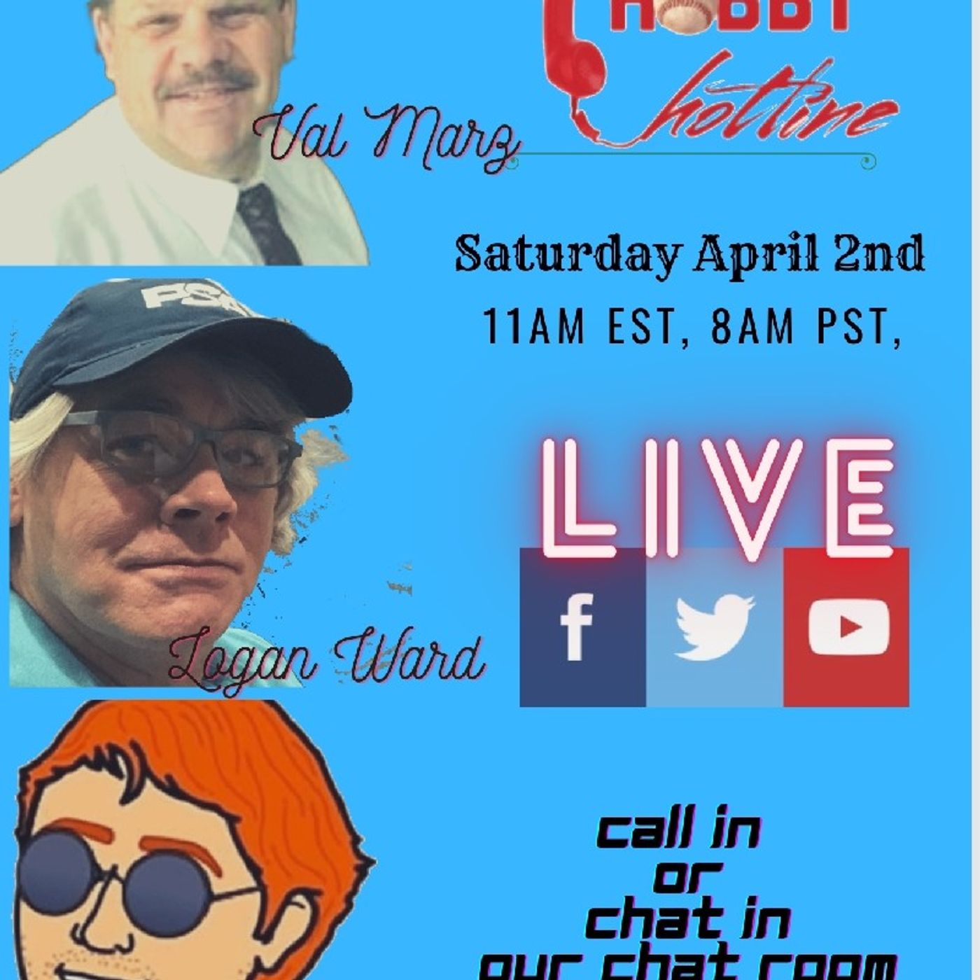 The sports card hobby's Only Live Call In Show. Live every Saturday morning at 11am EST/ 8am PST and Tuesday nights 9pm EST/ 6pm PST.(Youtube, Facebook and Twitch)