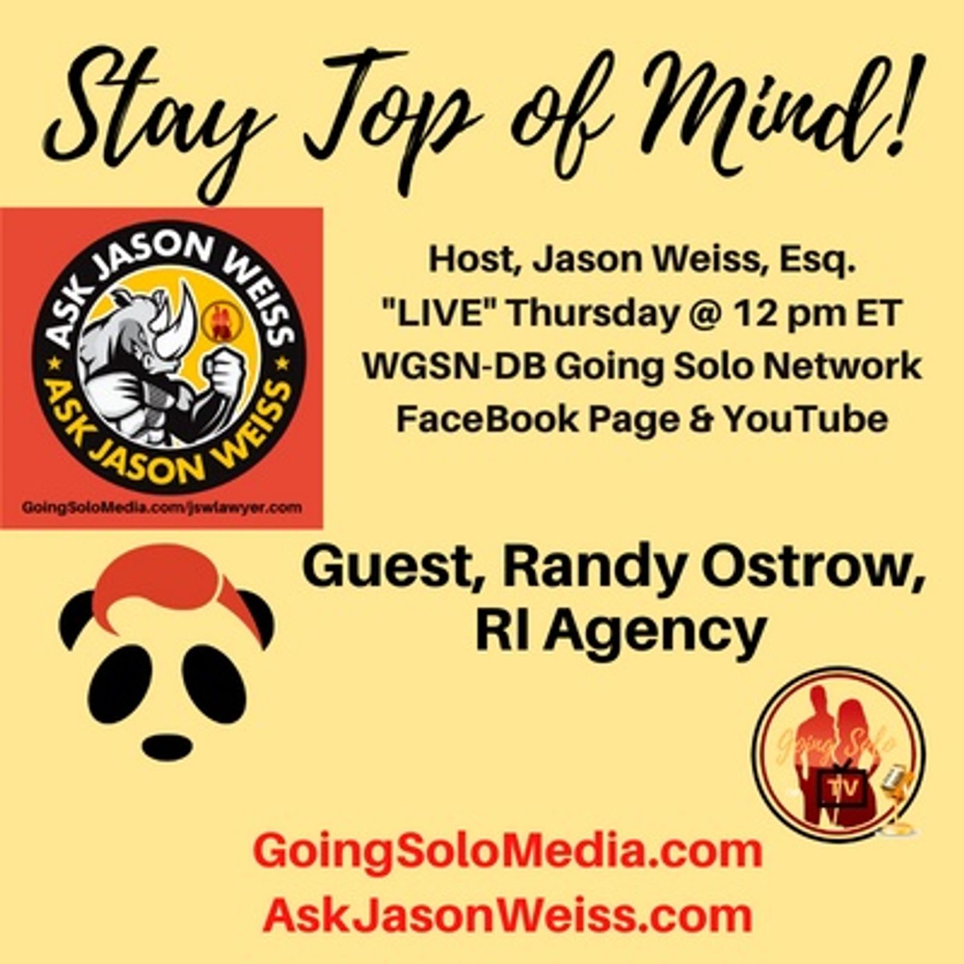 Stay Top of Mind with Guest, Randy Ostrow, RI Agency and Host, Jason Weiss, Esq. of the Ask Jason Weiss show.