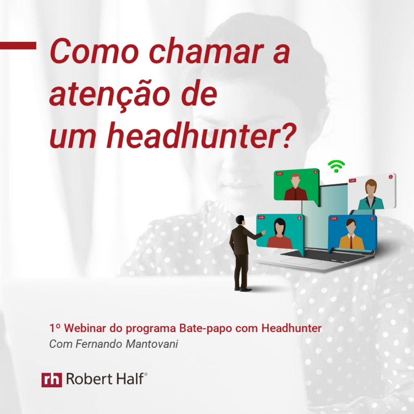 Participe do programa Bate-papo com headhunter, que conta com uma série exclusiva de 4 webinars com Fernando Mantovani, Diretor Geral da Robert Half, nos quais você desfrutará de insights, dicas e reflexões, além de poder esclarecer eventuais dúvidas sobre o mercado de trabalho.