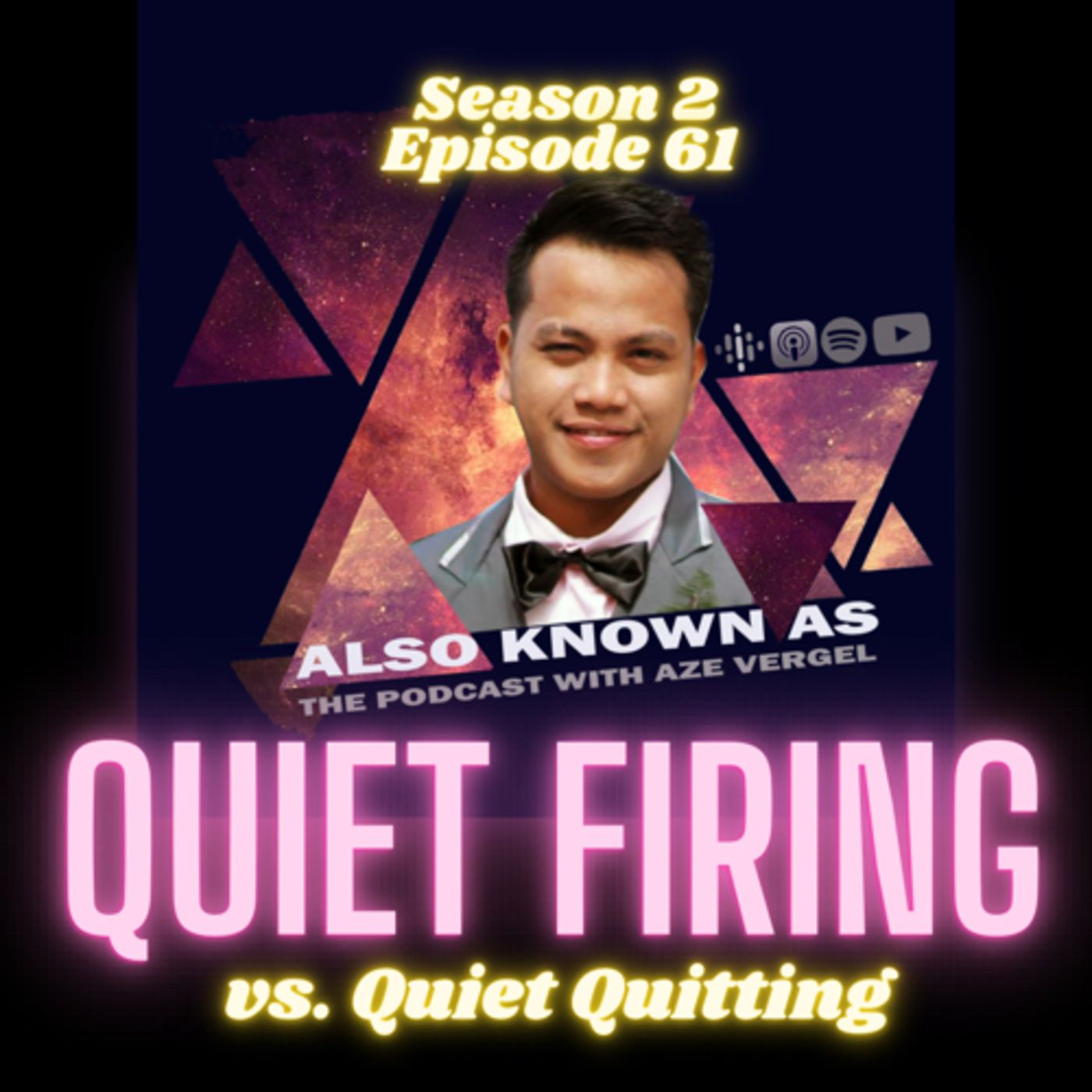 What are the signs that your boss is quiet firing you? Pag-usapan natin yan sa episode na ito. ⭐⭐⭐⭐⭐If you like this podcast, please don’t hesitate to leave me a 5-star rating. Click the FOLLOW button, too. Thank you! Aze Vergel would like to thank the following (Please support this podcast by clicking the following links below): As it is with Sir Aze https://spoti.fi/3iYRTX6 Listen to the FULL EPISODES about QUIET QUITTING https://spoti.fi/3DEOAvp https://spoti.fi/3JJpizV Podmetrics: https://podmetrics.co/ Use my code in Podmetrics: AZEVERGEL SHOPEE: podlink.co/i55 LAZADA: podlink.co/8c6 Follow me on these Social Media platforms: Tiktok and IG: @iamazevergel FB Page: https://bit.ly/3KVx6wQ FB Page2 https://bit.ly/3vaw0Yp Twitter https://twitter.com/vergel_abalos Instagram https://www.instagram.com/iamazevergel/ Music from Uppbeat (free for Creators!): https://uppbeat.io/t/soundroll/feeling-home License code: ZKVGVNFSFQPVY8B6 Music from #Uppbeat (free for Creators!): https://uppbeat.io/t/all-good-folks/go-create License code: ESWNAIOIUDPPSQNS --- Send in a voice message: https://anchor.fm/azevergel/message