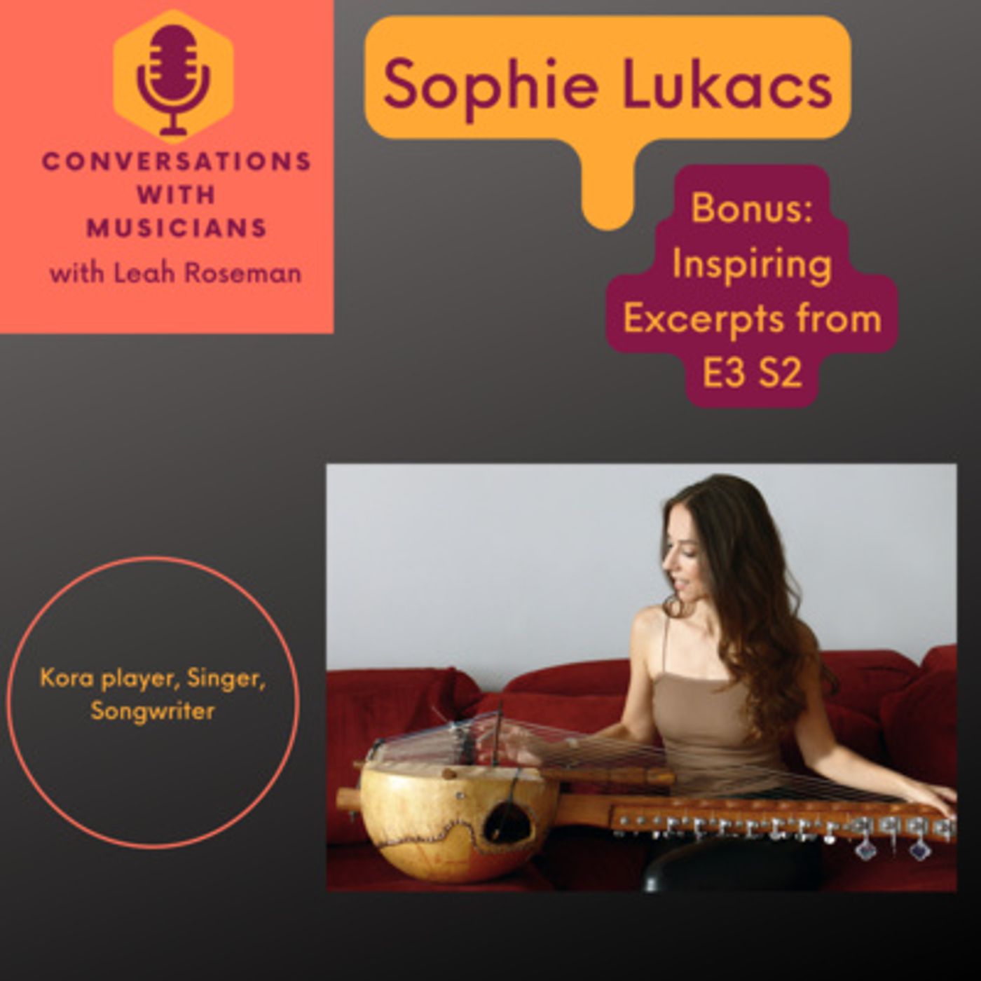 This is a short bonus episode in my Inspiring Excerpts series, from E3 S2 with guest Sophie Lukacs, the kora player, singer and songwriter. You'll hear a short clip of her performance of a traditional tune "Jula Jegere", you'll hear her explain about the kora a bit, and then you'll hear her talk about her unique personal journey, leaving medical school to go live in Mali and immerse herself in the culture and master the kora. Finally, you'll hear a clip of her original song, "Falling". Links to the full episode in both video and podcast format along with the full transcript: www.leahroseman.com/blog/e3-s2-sophie-lukacs-transcript To learn more about Sophie and her current projects: https://www.sophielukacs.com/ photo credit: Christina Alonso --- Send in a voice message: https://anchor.fm/leah-roseman/message