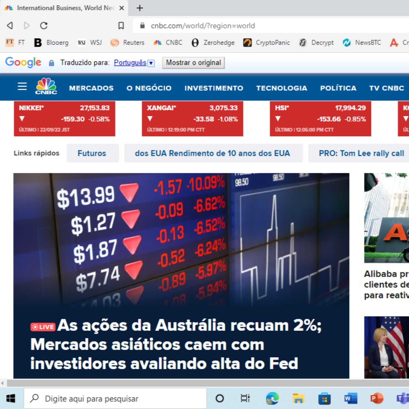 Criptoanálise do dia 23 de setembro de 2022.