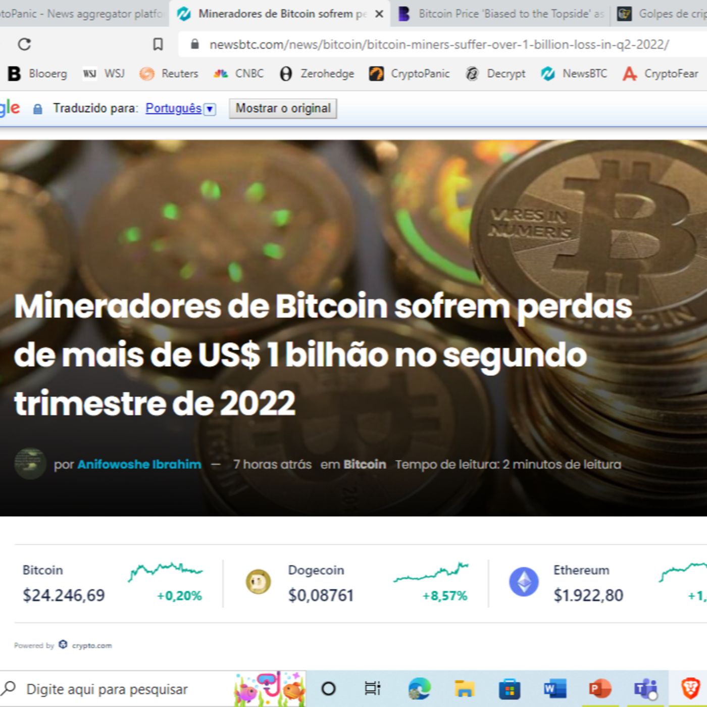 Criptoanálise do dia 17 de agosto de 2022.