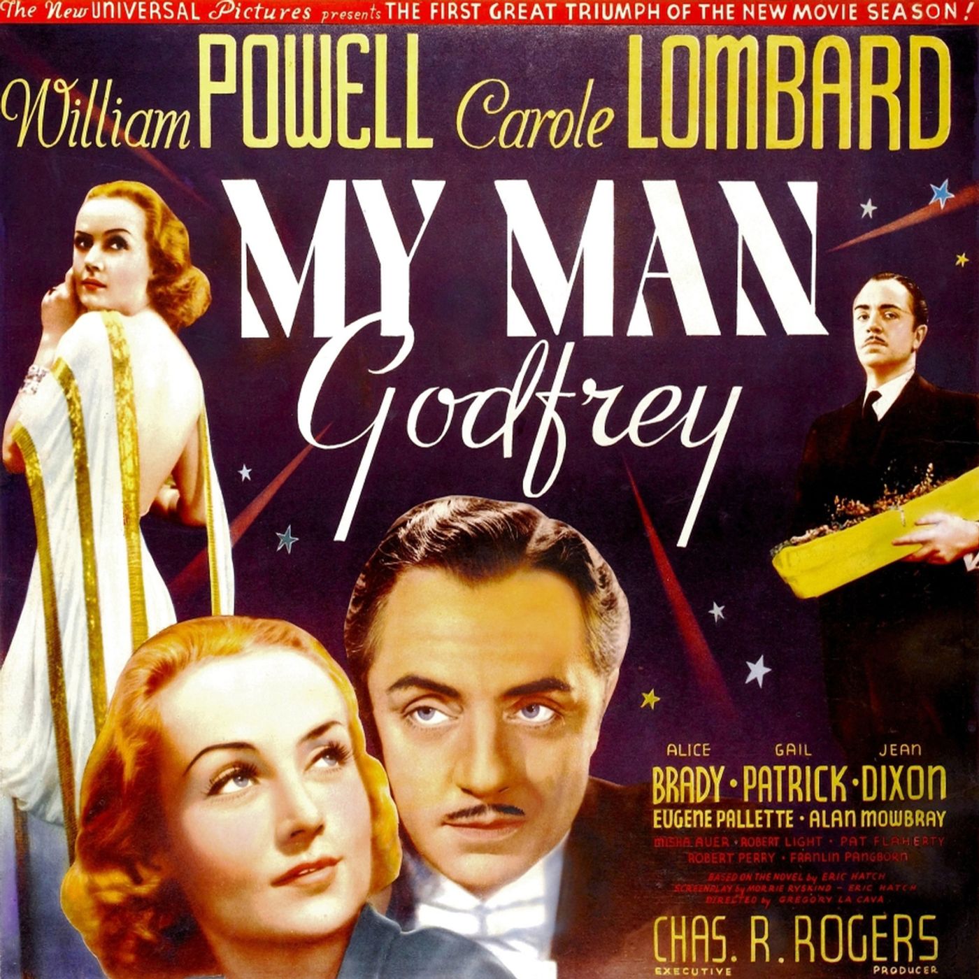 Screwball month continues with a look at Gregory la Cava’s My Man Godfrey. Based on the novel and co-written by Eric Hatch, the film stars William Powell as the titular Godfrey. He’s a forgotten man, living in a Hooverville in New York City where he’s picked up by a bunch of swells out on a scavenger hunt. Bringing in a forgotten man will net a lot of points and help Irene Bullock (Carole Lombard) win the game. In return, she hires Godfrey as a butler to the wacky Bullock family. And, of course, hilarity ensues...