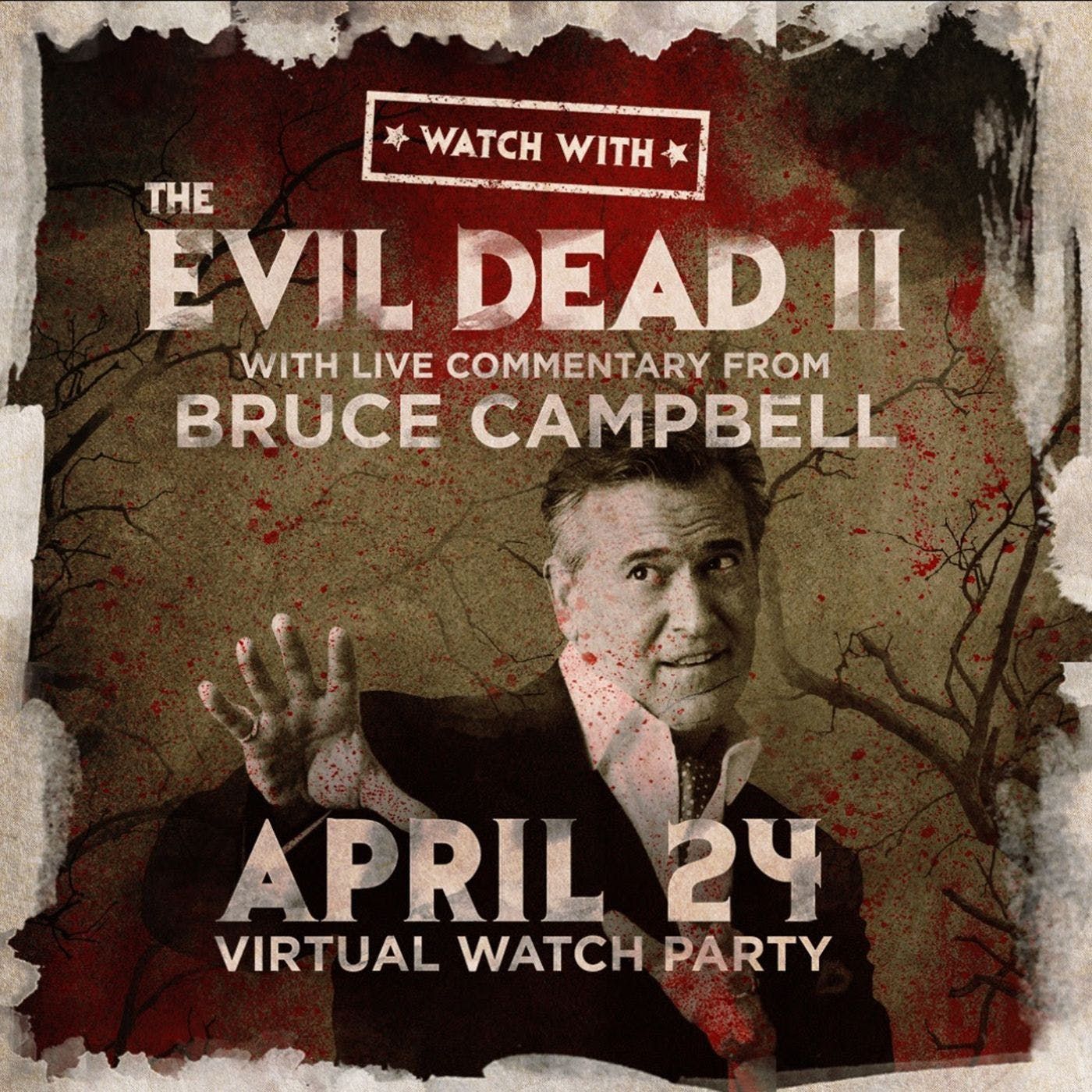 Bruce Campbell provides live commentary on THE EVIL DEAD II on Saturday, April 24, 2021, at 6 PM PST/9 PM EST!