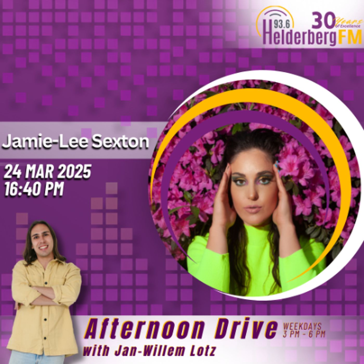 🎧 Catch Jamie-Lee Sexton on #AfternoonDrive with Jan-Willem on Helderberg FM! 🎧 She’ll be sharing all the details about her latest single Missing! Tune in for an exclusive conversation as she talks about the inspiration behind her electrifying new track and what’s next for her music journey. Don’t miss it! 🎶✨ #JamieLeeSexton #NewMusic #AfternoonDrive #HelderbergFM #ExclusiveInterview 📻 93.6fm | 💻 helderbergfm.co.za | 📱 WhatsApp 021 100 6936