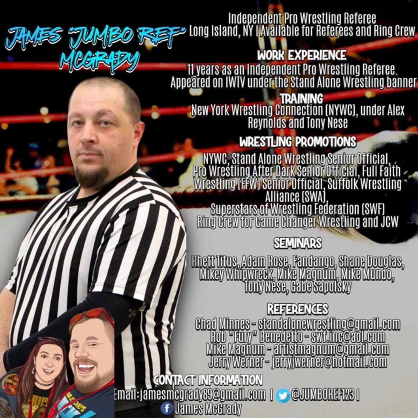 Ahoy! Join us in this JUMBO-sized episode as we welcome James Mcgrady AKA Jumbo Ref. James is a 12-year pro of the squared circle refereeing many promotions such as JCW, XPW, Stand Alone Wrestling, NYWC, and more! He has also worked ring crew for ROH, WWE, and GCW!