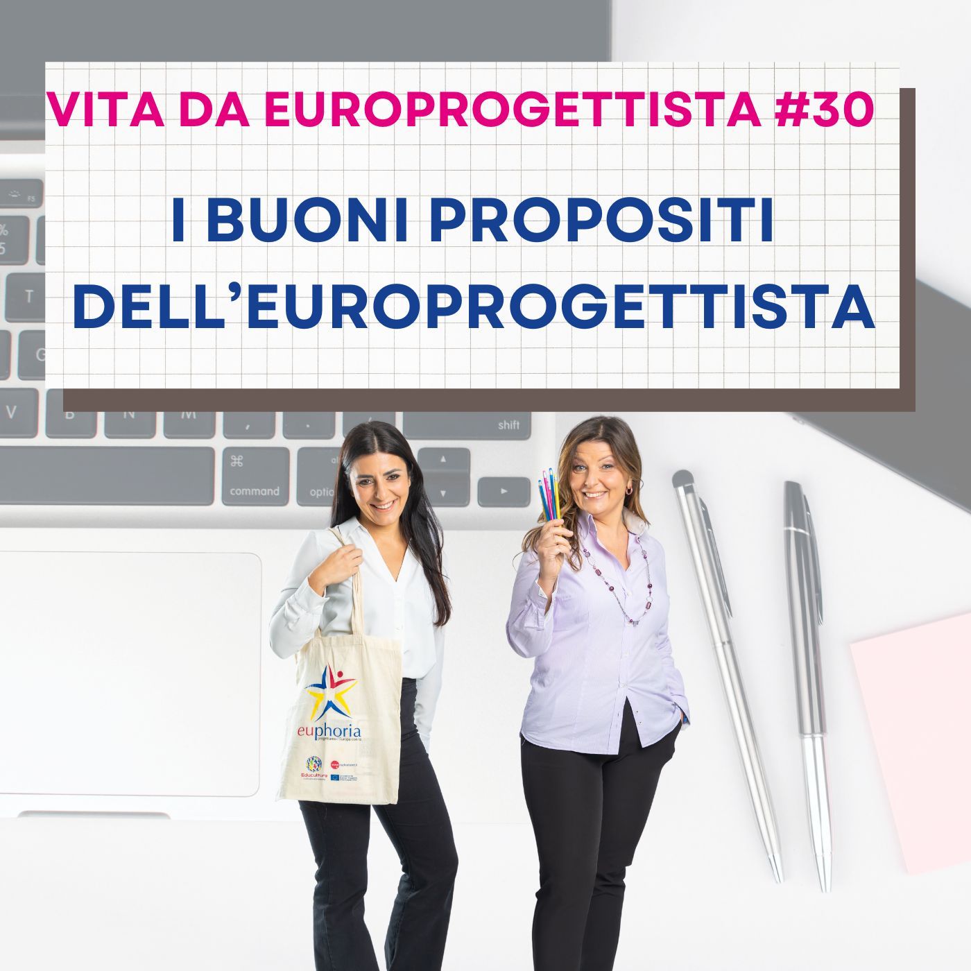 Ciao, siamo Cristina ed Erika di Euphoria Net, azienda specializzata in europrogettazione e in formazione per europrogettisti. Dal 2014, scriviamo, gestiamo e rendicontiamo progetti europei, e abbiamo vinto con la nostra azienda più di 50 bandi internazionali!
