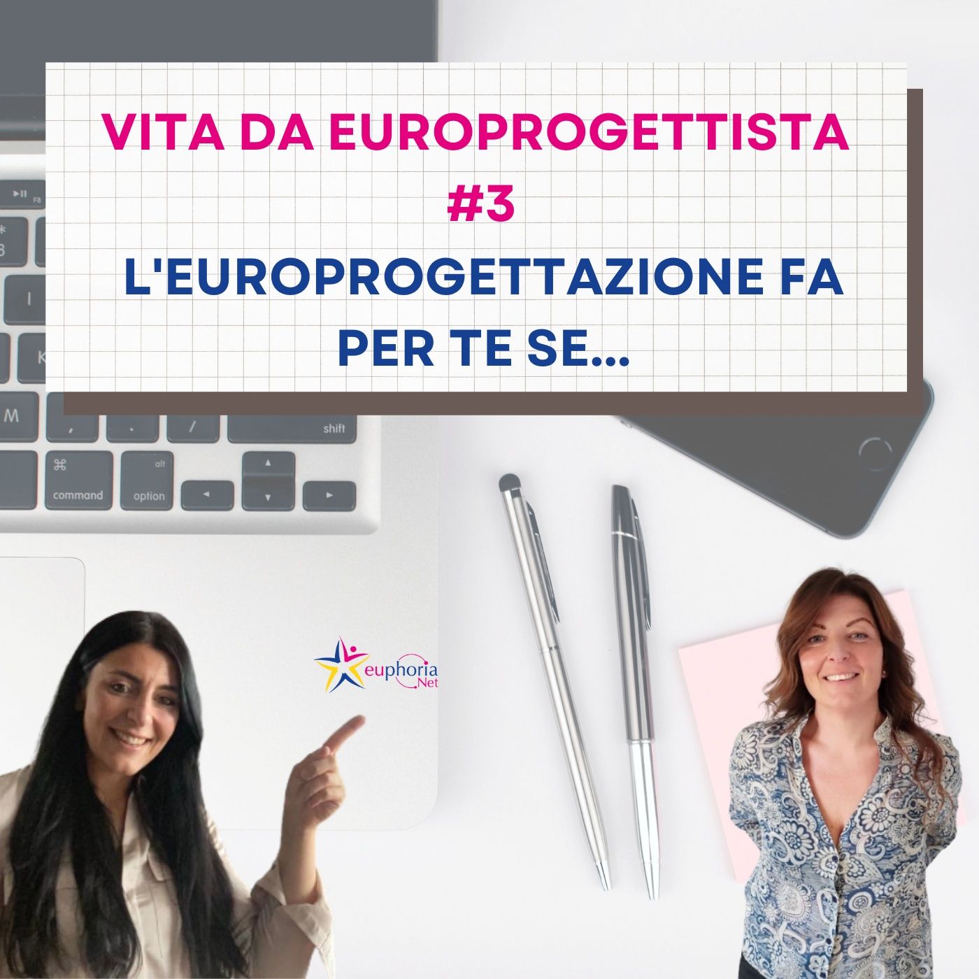 Ciao, siamo Cristina ed Erika di Euphoria Net, azienda specializzata in europrogettazione e in formazione per europrogettisti. Dal 2014, scriviamo, gestiamo e rendicontiamo progetti europei, e abbiamo vinto con la nostra azienda più di 50 bandi internazionali!