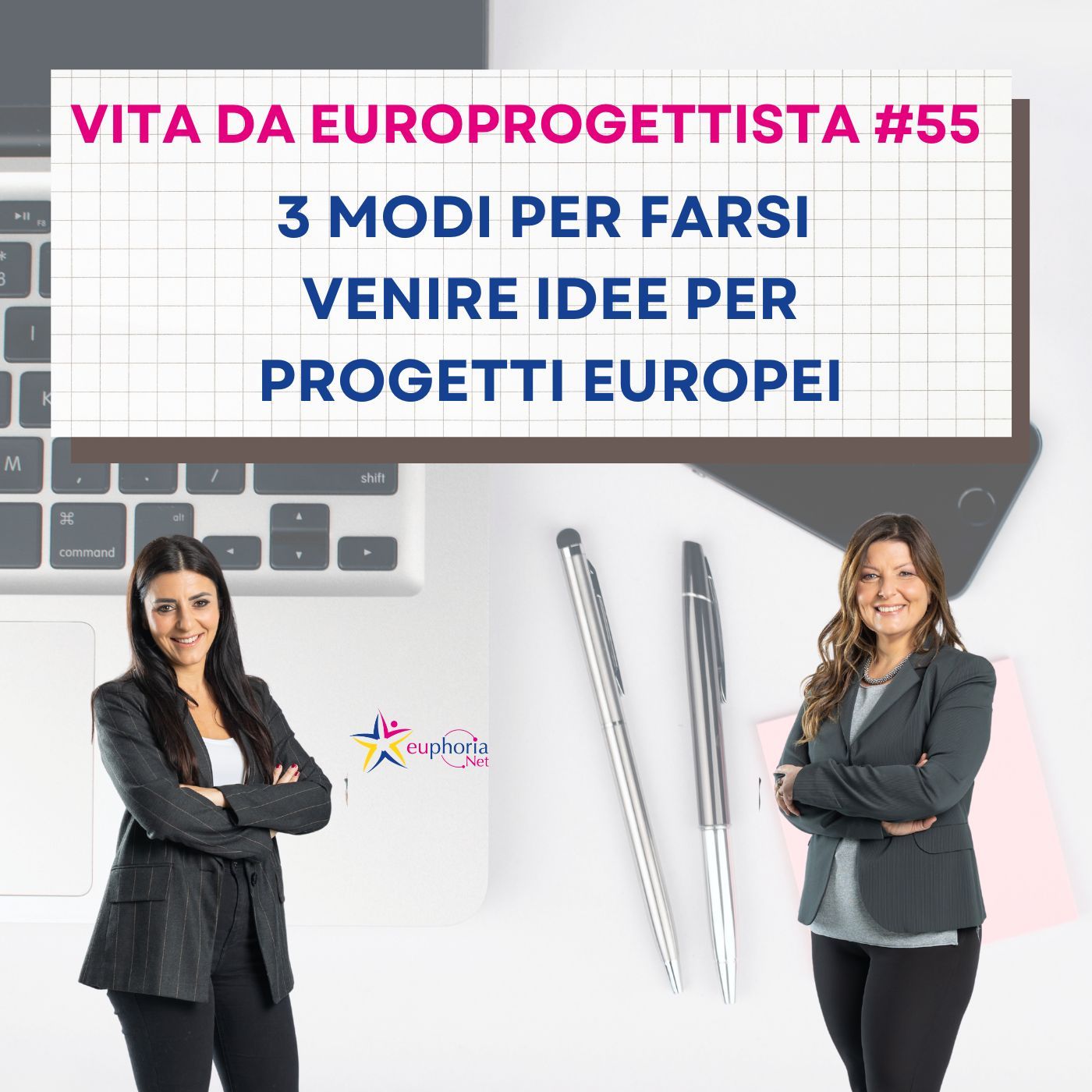 Ciao, siamo Cristina ed Erika di Euphoria Net, azienda specializzata in europrogettazione e in formazione per europrogettisti. Dal 2014, scriviamo, gestiamo e rendicontiamo progetti europei, e abbiamo vinto con la nostra azienda più di 53 bandi internazionali! In questa puntata condividiamo 3 modi per farsi venire delle idee per scrivere e trasformarle in progetti europei. Se vuoi intraprendere la professione dell'europrogettista e vuoi capire quale può essere il percorso più adatto per te, compila questo modulo: https://forms.gle/jYHsTgkC6m9u7PkAA
