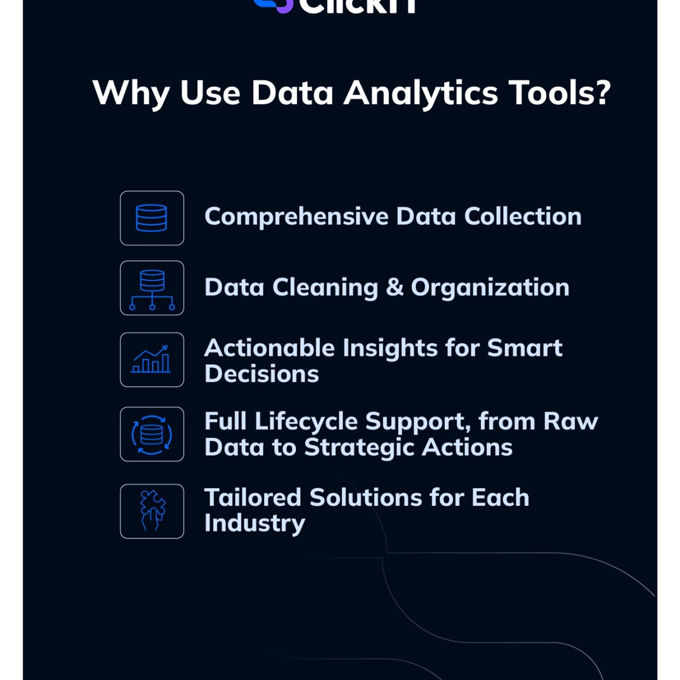Companies rely on data analytics tools to transform raw data into strategic insights. Whether you need a data analytics tools list featuring general options like Tableau or advanced tools for healthcare, selecting the right solution is key to success. https://www.clickittech.com/data-analytics/data-analytics-tools-list/?utm_source=referral&utm_medium=backlinks&utm_campaign=rk