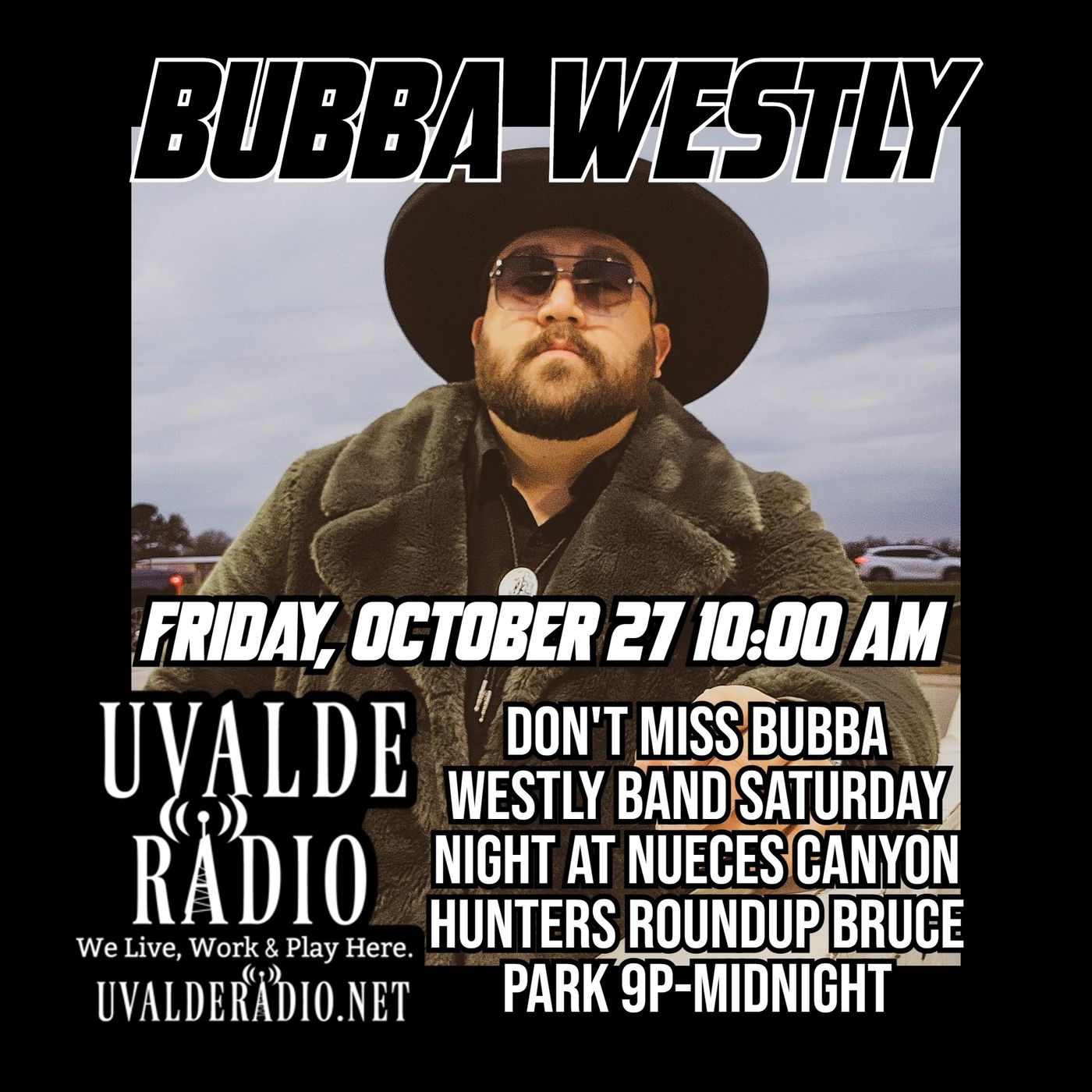 Robert Miguel spoke with very special guest Bubba Westly and got a little preview of what to expect when Bubba Westly Band performs Saturday 10/28 at Bruce Park as the grand finale of the Nueces Canyon Hunters Round-Up in Camp Wood