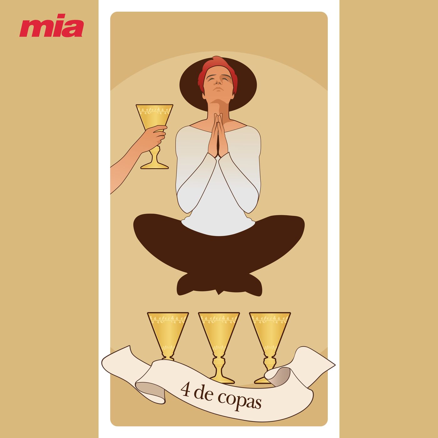 El cuatro de copas habla de la inconstancia de los sentimientos, seguramente por hartazgo y hastío. Es posible que hayamos deseado algo y, al obtenerlo, reaccionamos con rechazo, aversión y disgusto. En el terreno de las relaciones, esta carta expresa, generalmente, cosas que damos por sentadas. Buscamos a alguien o algo y, cuando finalmente entra en nuestra vida, no deseamos ser molestados. Siempre hay una excusa o motivo que nos impide socializar, salir o aceptar una invitación