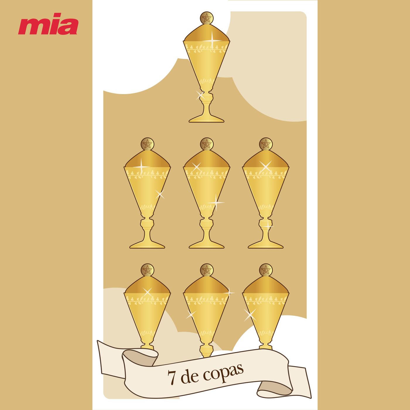 El siete de copas es la carta del espejismo, de la ilusión y el engaño. De las falsas esperanzas, del dejarnos engañar y como consecuencia de todo esto, de la desilusión. Encarna especialmente la confusión emocional. En una tirada, indica al consultante que a pesar de la confusión debe determinar cuáles son sus prioridades. La vida nada tiene que ver con las ilusiones, así que debe determinar con realismo, y cuanto antes, qué desea en la vida y qué cosas son importantes para él.