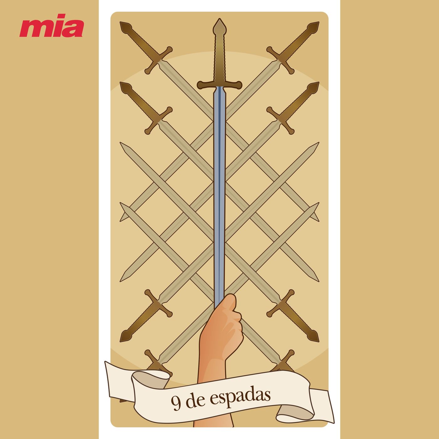 El nueve de espadas augura un estado de sufrimiento, de honda inquietud y abatimiento. Habla de una angustia mental poderosa que puede tener su origen dentro de nosotros. Quizás surge porque somos muy negativos respecto a nuestras acciones o capacidades o quizás se deba a un remordimiento de conciencia o al miedo a una amenaza (traición, enfermedad...). Lo cierto es que, generalmente, no tiene fundamento, pero aun así, ese dolor se transforma en insomnio, miedo, depresión, soledad y aislamiento.