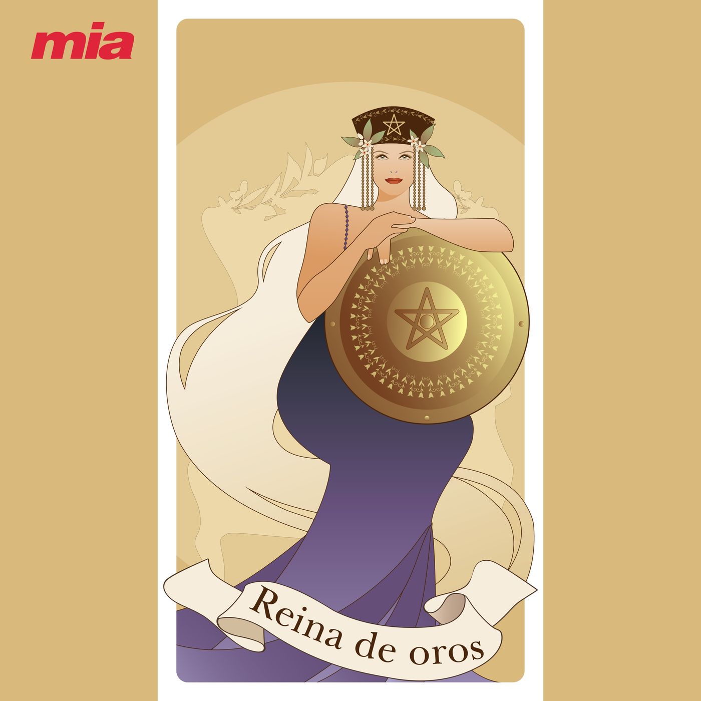 La reina de oros es la bondad de espíritu, la fiabilidad, la laboriosidad y la fertilidad. Se podría decir que es una ‘Madre coraje’ con una fuerte intuición para los temas materiales y económicos. Una madre de familia abierta a los placeres de la vida. La generosidad es la característica de la reina de oros.