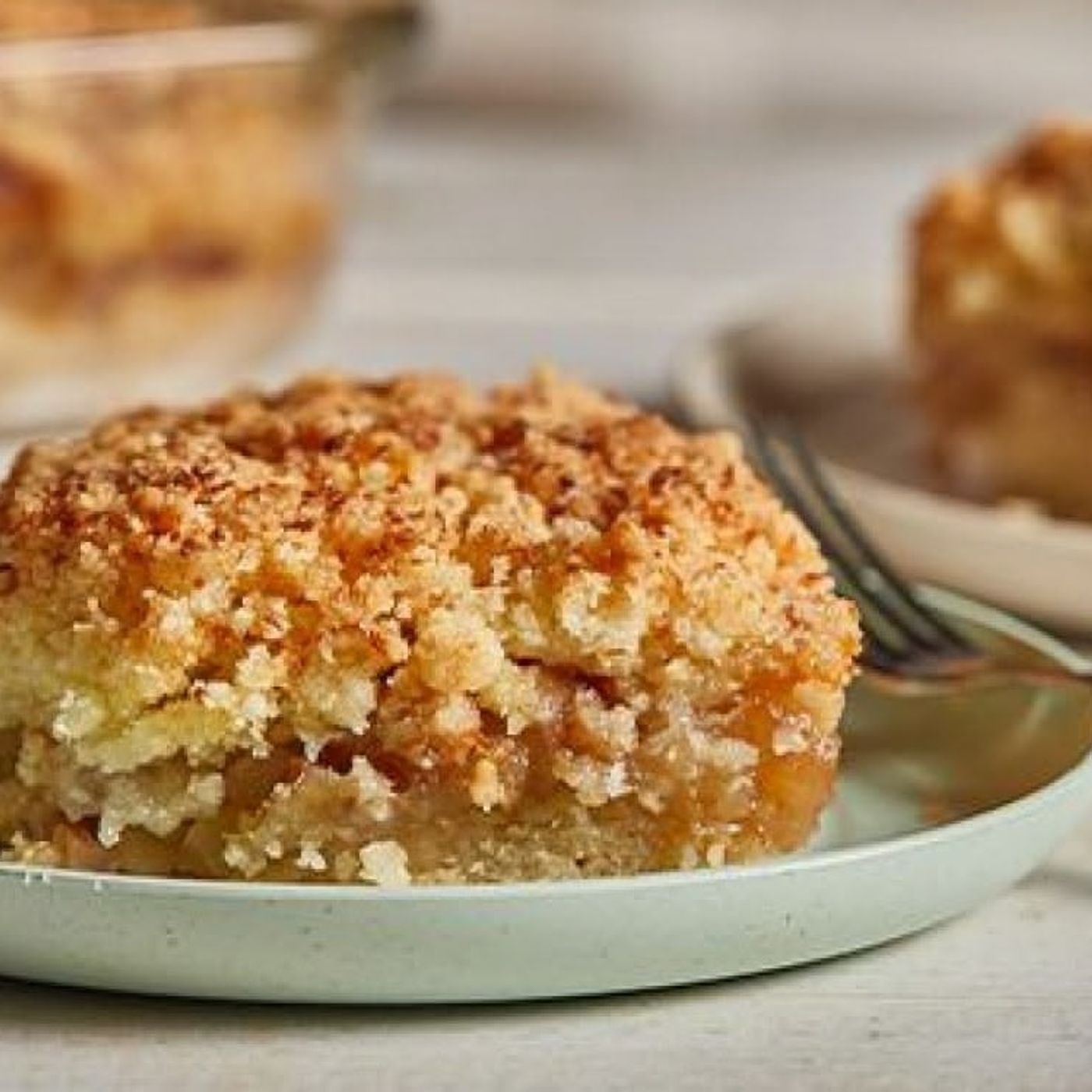 Cómo preparar la receta del crujiente de manzanas, paso a paso1. Primero, precalienta el horno a 180ºC. Mientras tanto, en un bowl grande, mezcla las manzanas cortadas en cubos con el azúcar, el jugo de limón, la canela y la avena. Luego, lleva esa mezcla a un molde para horno engrasado.2. Para el crumble, en otro recipiente, mezcla la harina integral, el azúcar y la pizca de sal. Agrega manteca fría cortada en cubos e incorpora todos los ingredientes con los dedos o con un tenedor hasta formar un arenado.3. A continuación, espolvorea la mezcla de crumble sobre las