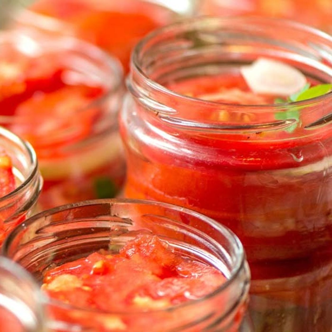 Poner a hervir en agua, durante 15 minutos, los frascos y las tapas (especiales para conservas); apagar el fuego y déjelos reposar ahí mismo. En una olla grande ponga a hervir las 10 tazas de agua con el aceite, la sal, la pimienta, el jugo de limón y la parte de albahaca picada. Retíreles el ombligo a los tomates y hágales una cruz con un cuchillo en el otro extremo. Póngalos en la mezcla anterior una vez que esté hirviendo y déjelos ahí de tres a cinco minutos. Sáquelos, uno en uno, ayudándose con un tenedor; pélelos y regréselos al agua hirviendo. Retire los frascos del agua y vaya acomodando los tomates dentro de éstos, sin ensuciar las roscas de éstos. Adórnelos con las hojas de albahaca, ayudándose con un cuchillo para sacar las burbujas de aire, y rellene todo con el agua donde se hirvieron los tomates, dejando el líquido 5 centímetros abajo de la rosca. Acomode los frascos ya listos en el mismo recipiente donde se hirvieron con anterioridad. Tápelos y caliéntelos a fuego lento hasta que la tapa se suma y se forme el vacío.