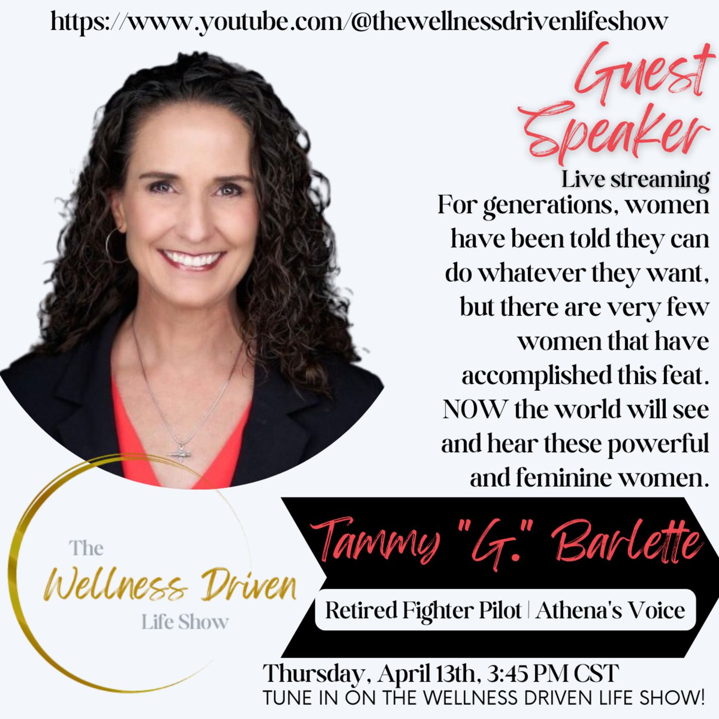 Tammy “G.” Barlett, has set a new standard of mental toughness that will leave you inspired and determined to break through your own brick walls! Watch this video to follow the story of this courageous female fighter pilot who showed resilience and grit, even while pregnant. Tammy is an example of what can be achieved when the mind is strong enough to overcome any challenge. Learn more: https://www.athenasvoiceusa.comhttps://twitter.com/TammyBarlettehttps://www.instagram.com/tammybarlette/https://www.facebook.com/tammybarlette • Tammy "G." Barlette https://www.linkedin.com/in/tammybarl... Music and Videography by Steve Stuntz @stevestuntz9303 Today's SPONSORS: 1. eWomenNetwork's Fort Worth/Tarrant County Chapter: https://www.ewomennetwork.com/chapter... 2. Bella Grace: https://twdls.bellagraceglobal.com/ 3. Kim Jacobs Consulting: https://kimjacobsconsulting.com/busin... 4. CTR Media Network: https://www.ctrmedianetwork.com/ 5. People everywhere are discovering the life-changing power of Kangen Water. Find out more @ www.kangenval.com 6. Hilari Hill Empowering Transitions Life Coaching hilari@empoweringtransitionslc.com Visit the Shows Website: https://www.thewellnessdrivenlifeshow... You can subscribe and turn your notifications to all to receive an alert when we go live! / @thewellnessdrive... Follow: https://www.facebook.com/thewellnessd... Our program operates through community contributions and is live Monday -Friday from 3:45 PM -4:45 PM CST! Ways to contribute; Cash App: $TWDLS Venmo: @TWDLS or PayPal.me/TWDLS -Thank you in advance for any contribution. DISCLAIMER: https://www.thewellnessdrivenlifeshow...#TWDLS #Podcast #TalkShow #AthenasVoice #TammyBarlette #FighterPilot #MentalToughness #MissionFocusedMindset #FemaleWarrior
