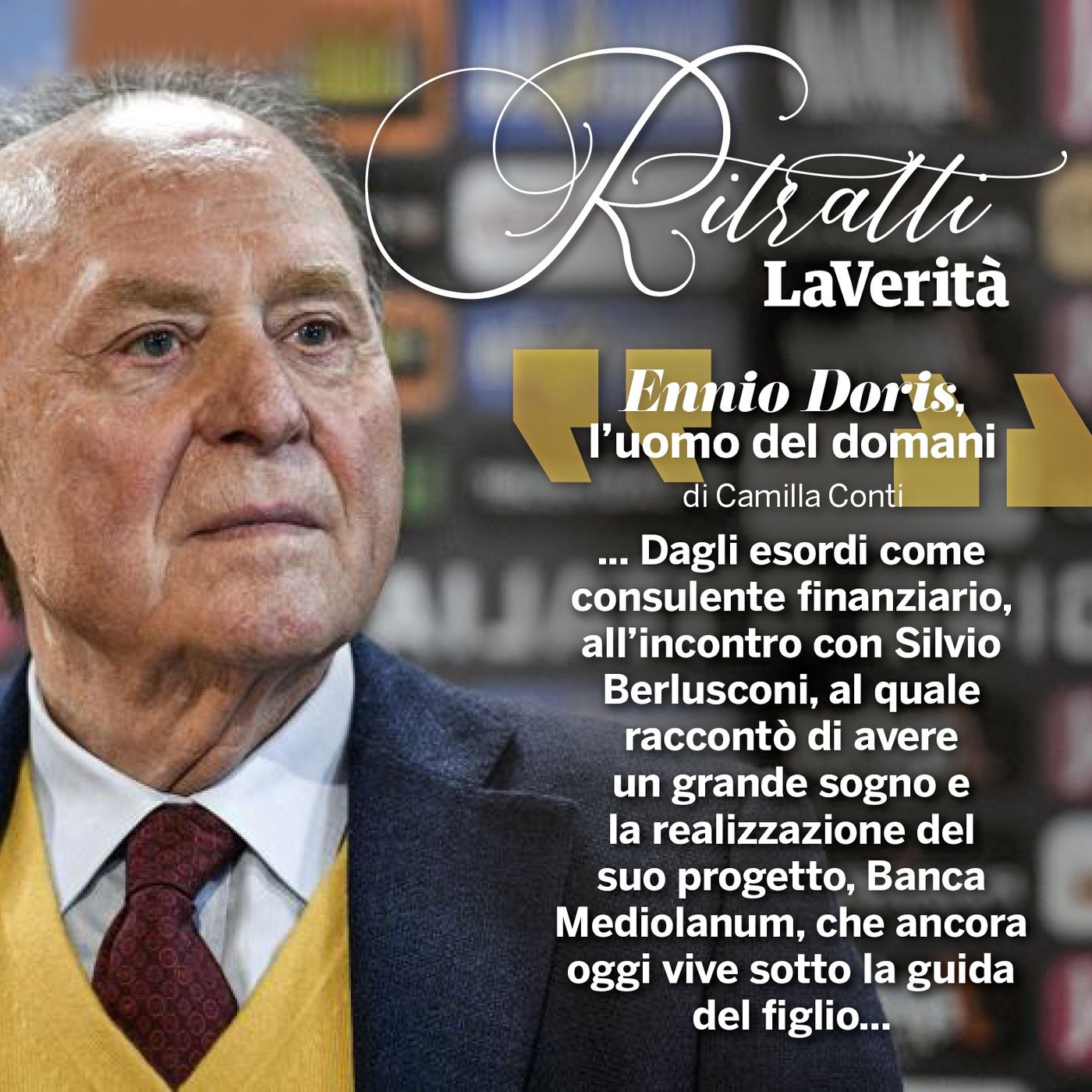 Il ventiduesimo podcast di Ritratti è dedicato a Ennio Doris. Dagli esordi come consulente finanziario, all'incontro con Silvio Berlusconi, al quale raccontò di avere un grande sogno e la realizzazione del suo progetto, Banca Mediolanum, che ancora oggi vive sotto la guida del figlio primogenito Massimo. Nato a Tombolo, in provincia di Padova, l'infanzia di Ennio Doris è stata povera e felice: giocava scalzo con un pallone improvvisato. Da grande ha realizzato i suoi sogni. Un visionario e un banchiere stimato che quando fallì Lehman Brothers risarcì i propri clienti. Qui vi raccontiamo la sua storia. Buon ascolto.