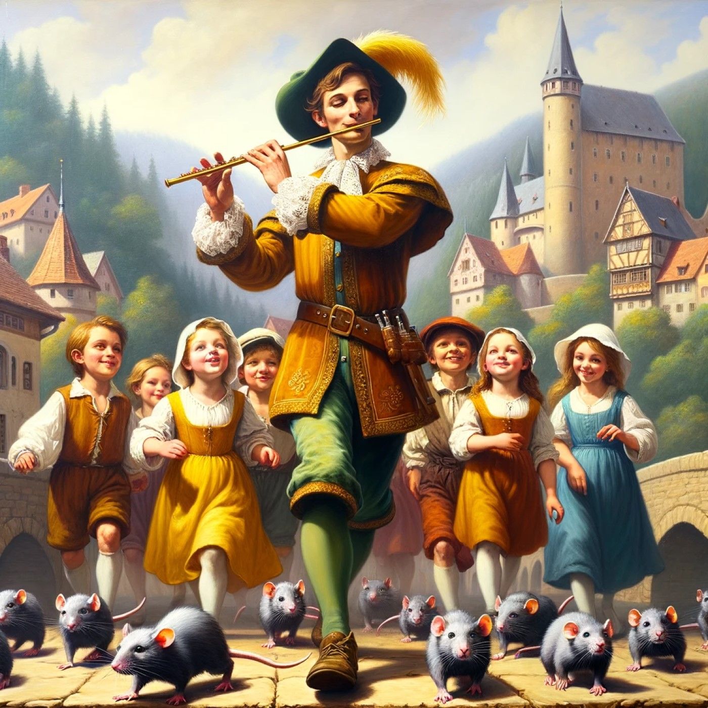 Dahulu kala di Hamelin, tikus-tikus berkuasa! π§ Kota ini lebih banyak hewan pengerat daripada penduduknya, sehingga penduduk kota yang putus asa memberikan hadiah yang begitu mewah, yang akan membuat tikus yang menyukai keju menjadi tersipu malu! π°Masuklah Pied Piper, seorang musisi yang ceria dan menyukai pakaian yang penuh warna. πDia berputar-putar di kota dengan gaya yang membuat serbat pelangi terlihat biasa saja! πΊ Si Peniup seruling mengacungkan pipa ajaibnya, membuat tikus-tikus yang sedang asyik bermain air terlena! π Tapi ketika penduduk kota yang keras kepala mengingkari janji pembayaran mereka, dia memainkan sebuah lagu yang membuat anak-anak mereka menari di luar kota, dan mereka tidak akan pernah terlihat lagi! ππΊDalam sebuah putaran takdir, hanya yang tuli nada atau yang tidak bisa menari yang tersisa. π Kota itu patah hati, tapi si Peniup Suling, dengan senyum liciknya, pergi, meninggalkan kota itu dalam kesedihan yang merdu selamanya! πΆββοΈπΆπ