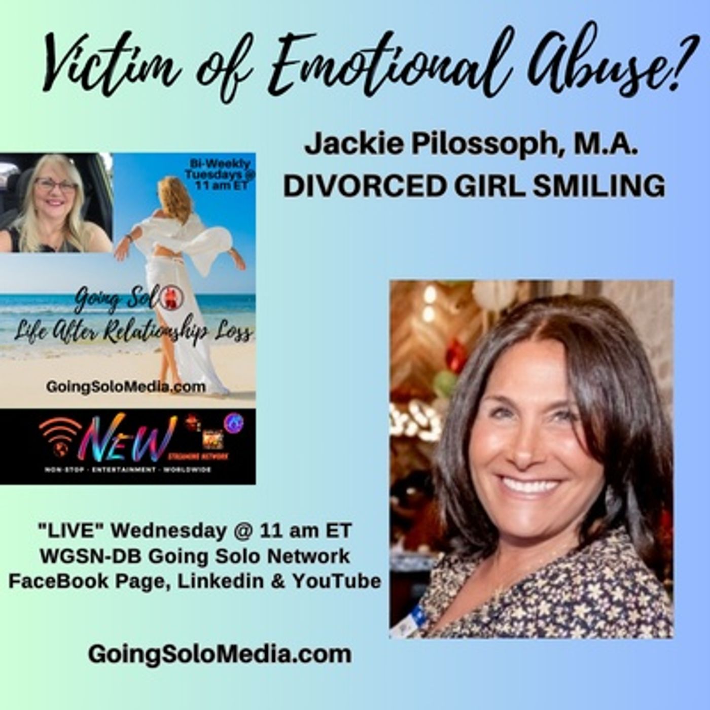 Hi everyone, I'm Cece Shatz, Doyenne of Relationship Building and I'm the host of Going Solo Life After Relationship Loss Show. Today I'm here with my special guest, Jackie Pilossoph, to discuss emotional abuse - something that many experience but few talk about openly. Drawing from her experience as the founder of Divorced Girl Smiling, Jackie is going to walk us through what emotional abuse looks like and how we can reclaim our power. So sit back and let's get started!