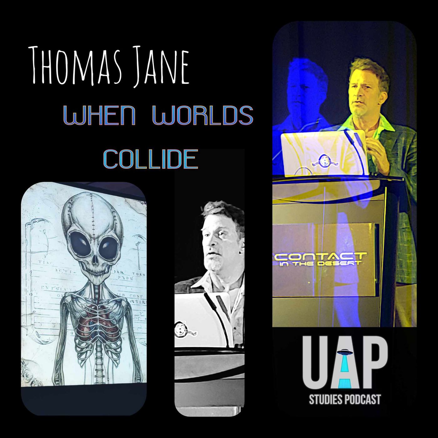 On this special episode of UAP STUDIES Podcast, acclaimed actor, author, and director Thomas Jane returns to present part 1 of his intriguing presentation titled "When Worlds Collide." This segment features content from Jane's talk delivered at the 10th anniversary of Contact in the Desert, the most prominent UFO conference in the world, on June 2. Thomas Jane, known for his two decades of research into extraterrestrial phenomena, shares insights from his ongoing investigation into what he calls "our global visitors/occupiers issue." This presentation likely draws from the extensive work Jane has been conducting for his upcoming book "A Humans Guide to Visiting Aliens". Listeners can expect a deep dive into Jane's perspectives on UFO phenomena, potentially including his personal experiences, research findings, and theories about extraterrestrial presence on Earth. Given Jane's reputation for thorough investigation and his unique position as a Hollywood insider with a passion for ufology, this episode promises content for UFO enthusiasts and skeptics alike, a job well done!