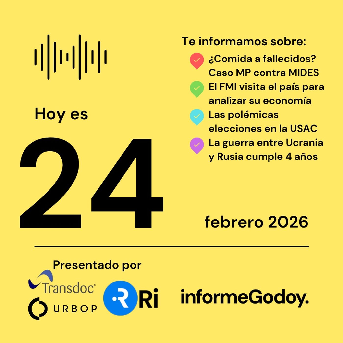 Hola #Informado/a. Esto es 𝗶𝗻𝗳𝗼𝗿𝗺𝗲𝗚𝗼𝗱𝗼𝘆. 👋📲 https://informegodoy.com/Presentado por: 🧳 Transdoc | transdoc.com 🏙️ URBOP | https://www.urbop.gt/ 🫰🏻 RI | recursosinteligentes.com :