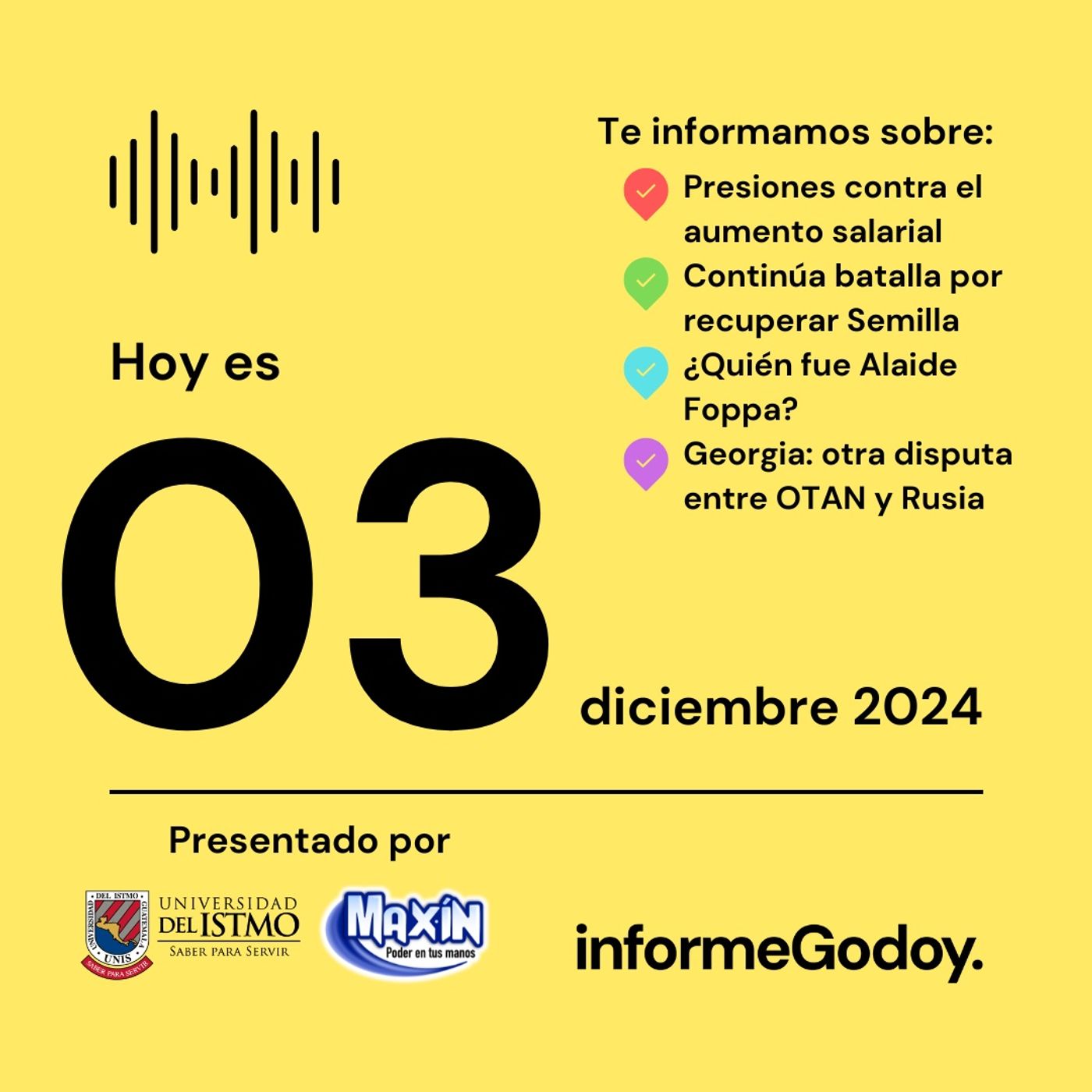 Hola #Informado/a. Esto es 𝗶𝗻𝗳𝗼𝗿𝗺𝗲𝗚𝗼𝗱𝗼𝘆. 👋📲 https://informegodoy.com/ Presentado por: 🧼 Maxin | www.maxinpoder.com 📣Revoluciona la comunicación en UNIS https://info.unis.edu.gt/pInformeGodoy2024 Guateauténtica trueguatemala.com
