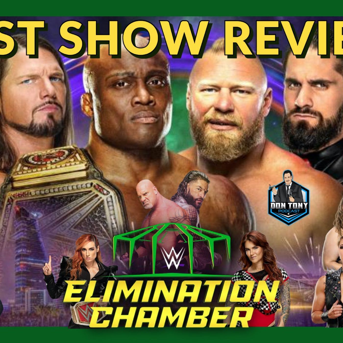 Roman Reigns vs Brock Lesnar: 'Title For Title' set for WrestleMania 38. Seeds planted with Seth Rollins inadvertently costing Bobby Lashley the WWE Championship? Should Steve Austin vs Kevin Owens be a one-on-one match or a 'Kevin Owens Show' segment at WrestleMania 38? Who was The Miz teasing to appear at 2/21/22 WWE Raw? Many think it could be Cody Rhodes. Our live audience mentioned Logan Paul. DT wishes it would be John Morrison. We discuss these scenarios and much more during your WWE Elimination Chamber 2022 Recap and Review hosted by Don Tony and brought to you by Blue Wire (www.bluewirepods.com). ==== WWE ELIMINATION CHAMBER 2022 RESULTS: