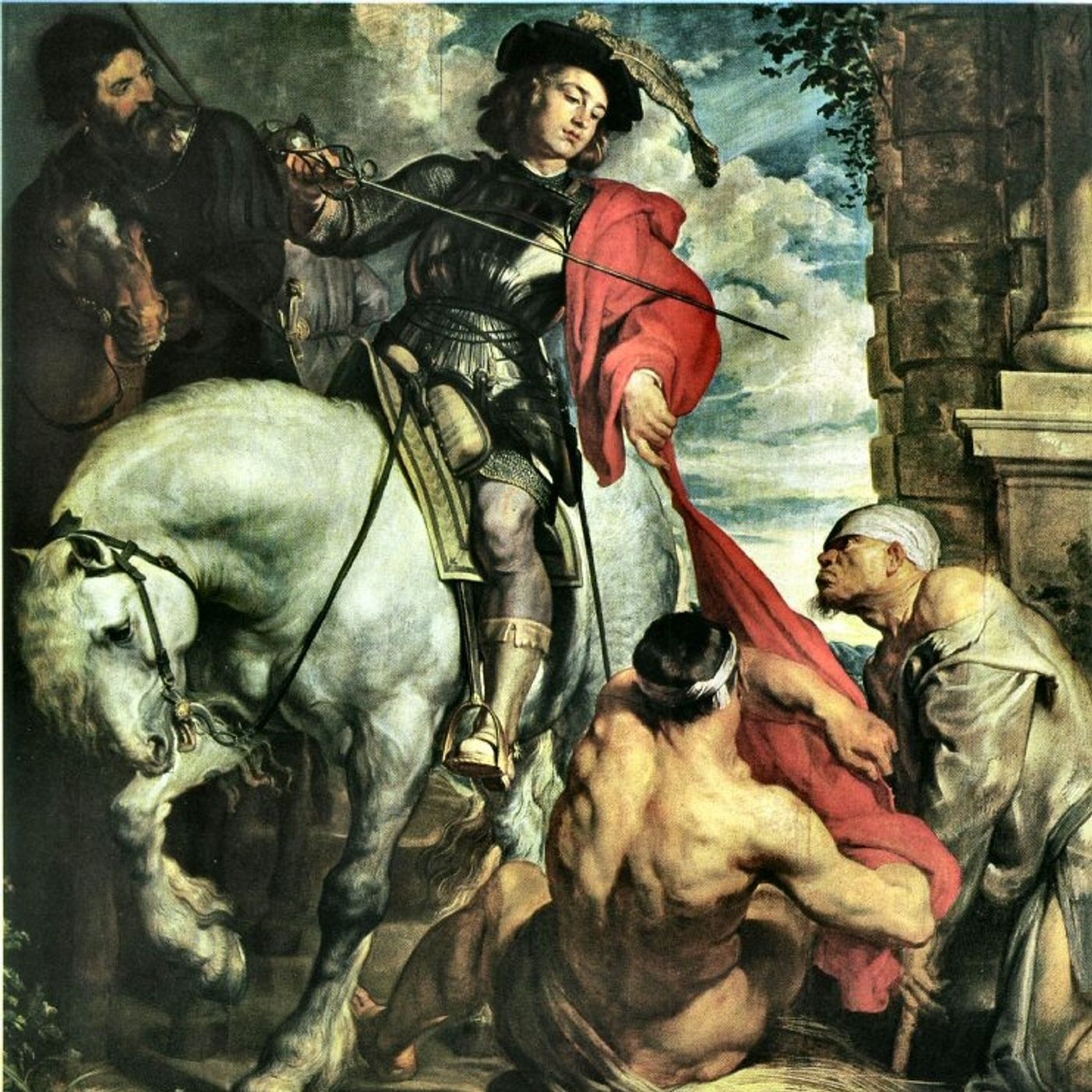 Accordingly, at a certain period, when he had nothing except his arms and his simple military dress, in the middle of winter, a winter which had shown itself more severe than ordinary, so that the extreme cold was proving fatal to many, he happened to meet at the gate of the city of Amiens a poor man destitute of clothing. He was entreating those that passed by to have compassion upon him, but all passed the wretched man without notice, when Martin, that man full of God, recognized that a being to whom others showed no pity, was, in that respect, left to him. Yet, what should he do? He had nothing except the cloak in which he was clad, for he had already parted with the rest of his garments for similar purposes. Taking, therefore, his sword with which he was girt, he divided his cloak into two equal parts, and gave one part to the poor man, while he again clothed himself with the remainder. ~From the Life of Saint Martin, by Sulpicius Severus