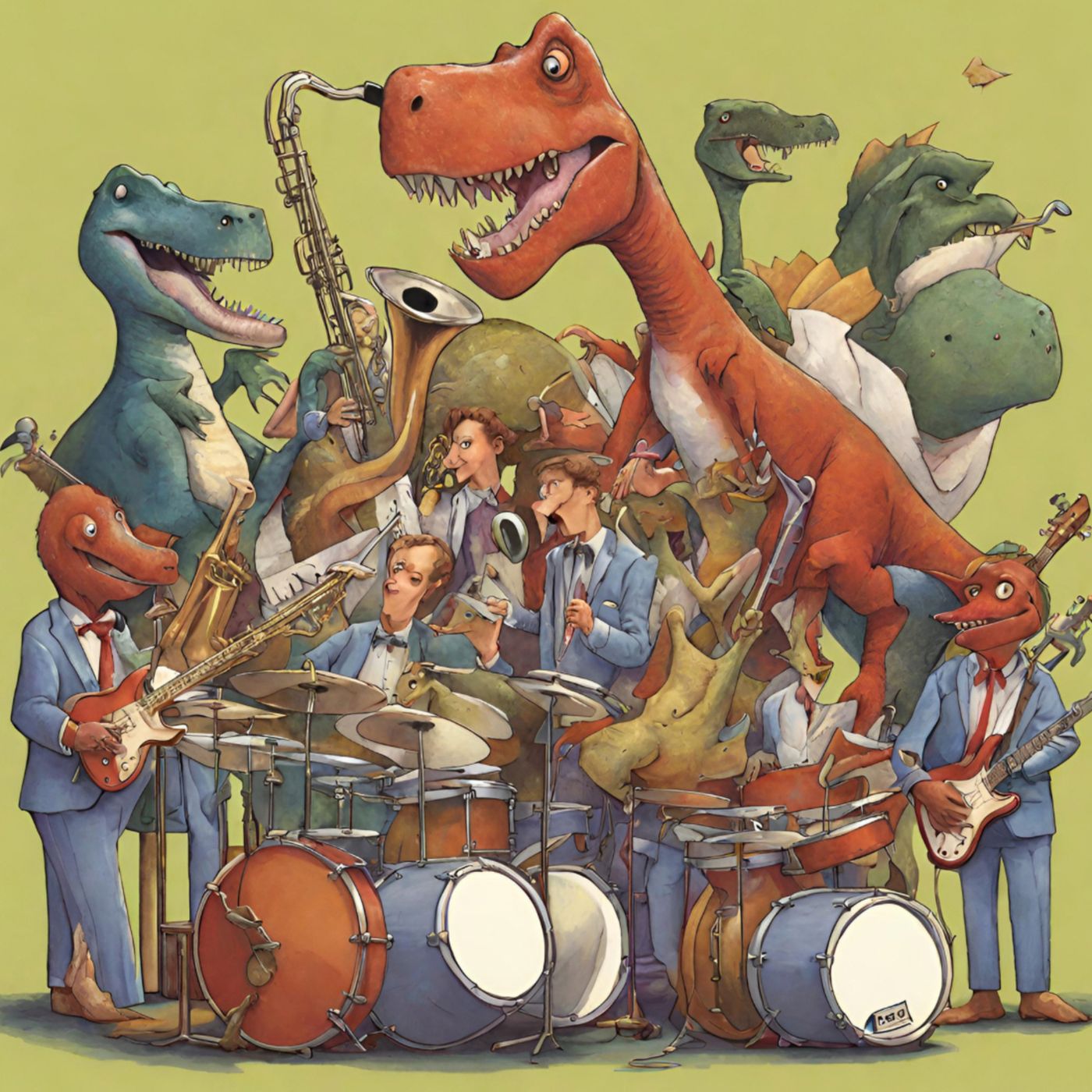 En la animada Tierra Jurásica, un fenómeno musical único tomó vida con la creación de la "Big Band de Dinosaurios". Liderada por el carismático T-Rex Trompetista, esta banda era conocida por su vibrante energía y la fusión de sonidos prehistóricos y ritmos modernos. El T-Rex Trompetista, cuyo nombre real era Rex Melódico, tenía un talento excepcional para la música y un oído agudo para los ritmos. Inspirado por los sonidos naturales de la Tierra Jurásica, decidió formar una banda que destacara la diversidad musical de los dinosaurios. La Big Band de Dinosaurios estaba compuesta por una variedad de dinosaurios músicos, cada uno especializado en un instrumento particular. Tenían al Triceratops Trombonista, al Velocirraptor Saxofonista, al Pterodáctilo Percusionista, y muchos más, cada uno aportando su estilo único al conjunto. Los ensayos de la banda eran todo un espectáculo, con dinosaurios de todas las formas y tamaños contribuyendo a la armonía general. Rex Melódico dirigía la orquesta con entusiasmo, usando sus cortos brazos para dar indicaciones precisas mientras emitía rugidos que resonaban como notas musicales. La Big Band de Dinosaurios se presentaba en diferentes lugares de la Tierra Jurásica, desde bosques frondosos hasta campos abiertos. Su música alegre y contagiosa atraía a dinosaurios de todas partes, creando un ambiente festivo en cada actuación. Un día, la noticia de la Big Band de Dinosaurios llegó a oídos humanos en una expedición paleontológica. Intrigados por los sonidos únicos que resonaban desde la Tierra Jurásica, los científicos humanos se aventuraron a crear un dispositivo que les permitiera escuchar y disfrutar de la música de los dinosaurios. La melodía prehistórica de la Big Band de Dinosaurios cautivó a la humanidad. La historia de esta extraordinaria banda se extendió por todo el mundo, llegando a ser conocida como la primera colaboración musical entre humanos y dinosaurios. Con el tiempo, el legado de la Big Band de Dinosaurios perduró como una muestra de que la música tiene el poder de trascender las barreras del tiempo y la especie. La armonía entre los dinosaurios músicos se convirtió en un recordatorio de la belleza que puede surgir cuando diferentes seres se unen para crear algo verdaderamente único y especial.JOSÉ PARDAL