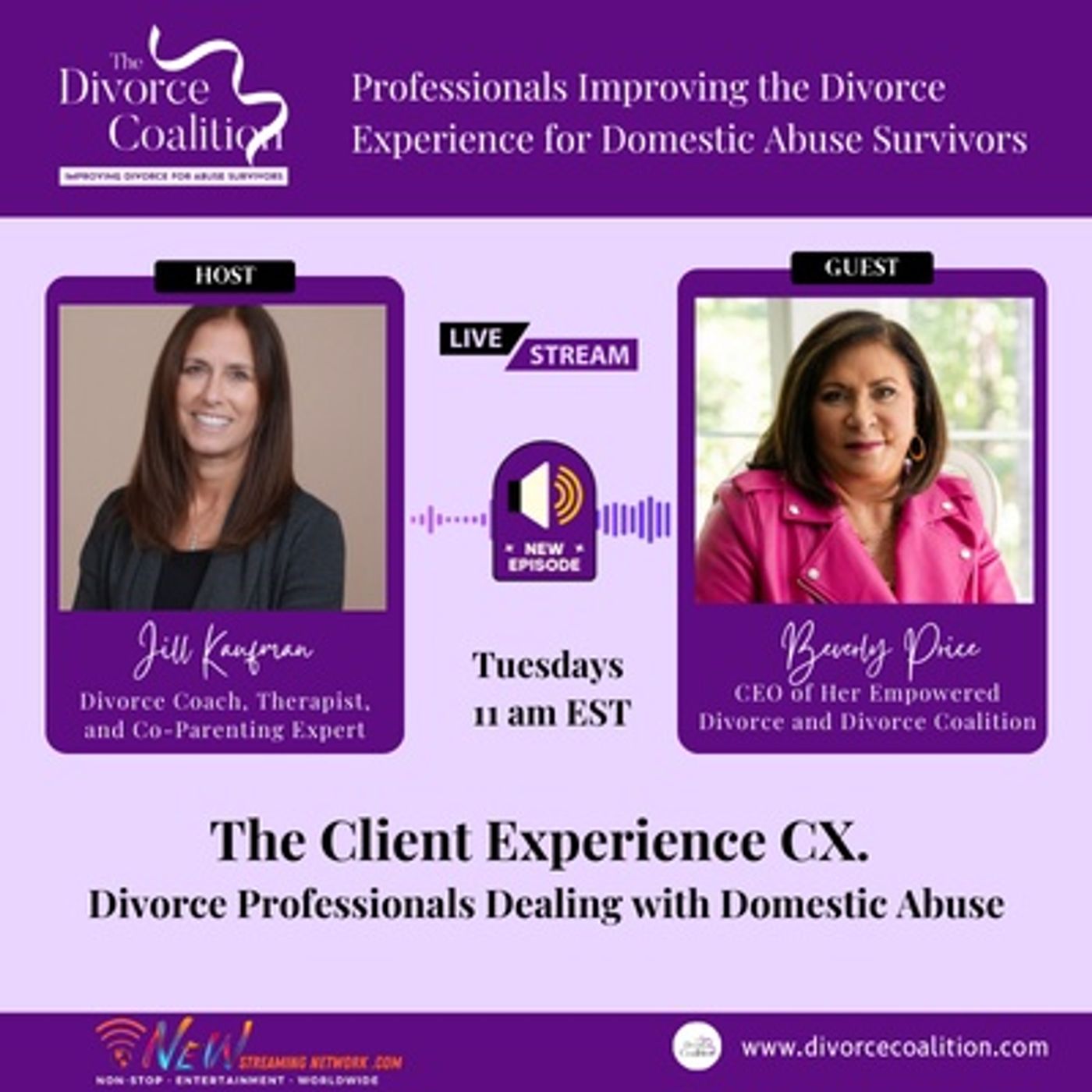 Beyond her commitment to individual empowerment in divorce, Beverly is driven by a profound mission to transform the landscape of domestic abuse. She is the visionary behind The Divorce Coalition, a coalition of leading podcast hosts, divorce experts, and domestic violence advocates united to illuminate the path of understanding, healing, and resilience. By educating professionals within the realms of family law, family and criminal court, and the legislative community, Beverly aims to address systemic issues related to domestic abuse.Â