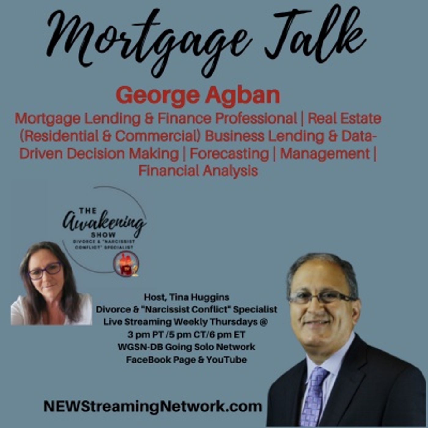 🏡 Mortgage Talk with George Agban 💰Navigating the world of mortgage lending and finance can be complex, but we’ve got you covered! Join George Agban, a Mortgage Lending & Finance Professional specializing in residential and commercial real estate, business lending, and data-driven decision-making, as he shares his expertise with Host Tina Huggins, Divorce Coach, on The Awakening Show. Learn valuable insights on forecasting, financial analysis, and smart lending strategies to help you make informed decisions. Don’t miss this must-watch episode on NEWStreamingNetwork.com! More