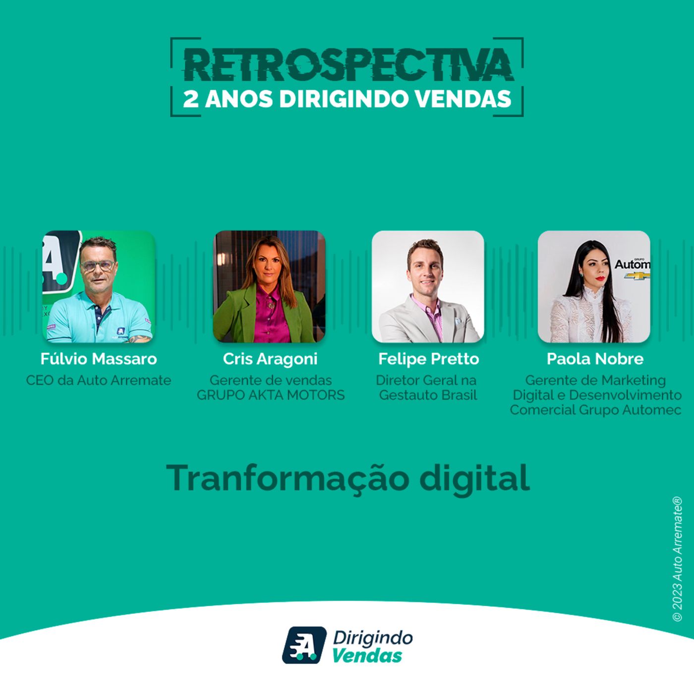 A retrospectiva 2 anos do Dirigindo Vendas continua! O episódio relembrado hoje é comandado pelo Host Fúlvio Massaro, CEO da Auto Arremate, e a temática discutida é como a transformação digital elevou o nível de atendimento dentro das concessionárias de automóveis. Para falar sobre o assunto o bate-papo conta com Cris Aragoni, Gerente de Vendas Grupo AKTA MOTORS, Paola Nobre, Gerente de Desenvolvimento Comercial e Marketing Digital Grupo Automec e Felipe Pretto Muraski, Diretor Geral da Gestauto Brasil. Este é mais um episódio do Dirigindo Vendas que foi gravado diretamente do 30° Congresso Expo Fenabrave, no estande da Auto Arremate® e Linx, e foi originalmente publicado em 28 de outubro de 2022. Episódio 34 - Transformação digital A digitalização dos processos no universo concessionário soma e provoca ainda mais negociações de sucesso. Hoje, existem ferramentas que auxiliam na gestão de negócios e plataformas de marketplace, atendendo à demanda crescente de compradores que buscam fazer negócios sem sair na rua, optando pela compra on-line. A conversa rendeu muito insights sobre a transformação no formato de trabalho com a era digital. Além do tema principal, Cris e Paola também comentam sobre empoderamento feminino no ramo automotivo. Quer saber mais? Vem ouvir esse episódio! Assuntos discutidos nesse podcast: