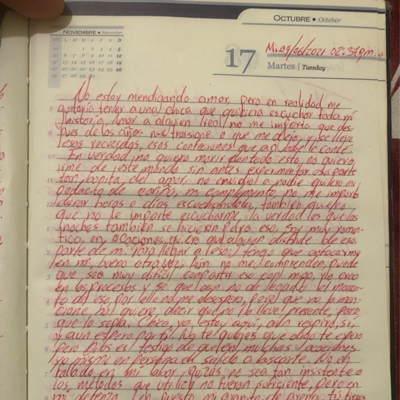 Delirando, veo algunas cosas con extrañeza, cómo si todo lo que está pasando no fuera la pura realidad, es como si solo fuera un punto de acceso, cómo si no fuera suficiente con el hecho de solo pellizcarme. Ese no es el caso, lo más importante sea que: no podemos quejarnos no más de lo que hacemos. Golpear, gritar o simplemente deambular es solo que nos suele pasar por la cabeza a diario 🗞️, y yo por otra parte soy mucho más de ahí yo soy más del tipo que se siente bien con el simple hecho de pensarlo de dibujar fragmentos por fragmento lo que quiero hacer y con eso sentir que ya vasto. Por otro lado está mi modo aún no, esté que me obliga a seguir buscando incluso cuando se que con lo que tengo es suficiente pero que aún así, puede que mañana me falte algo, algo que al final de cuenta 🧾 me hará sentir no suficiente, o quizás 🤔 estúpido porque no hice más a pesar de saber que lo debía o no hacer y eso es un fraude lo sé pero que se puede hacer, después de todo así es como yo creo que está diseñada nuestra existencia. Y es que no es suficiente 😤 que muchas películas 🍿 e historias no los revelen? Por que aparecemos unos cuantos que preferimos ir por ahí resbalando con la misma cáscara de guineo que ah hecho a tantos otros caer. Que estúpido no! Pero así es y no me importa 🤷🏾♂️ en lo más mínimo demostrar que todo eso puede cambiar, porque prefiero resbalar e intentar sentir lo que otros sintieron.