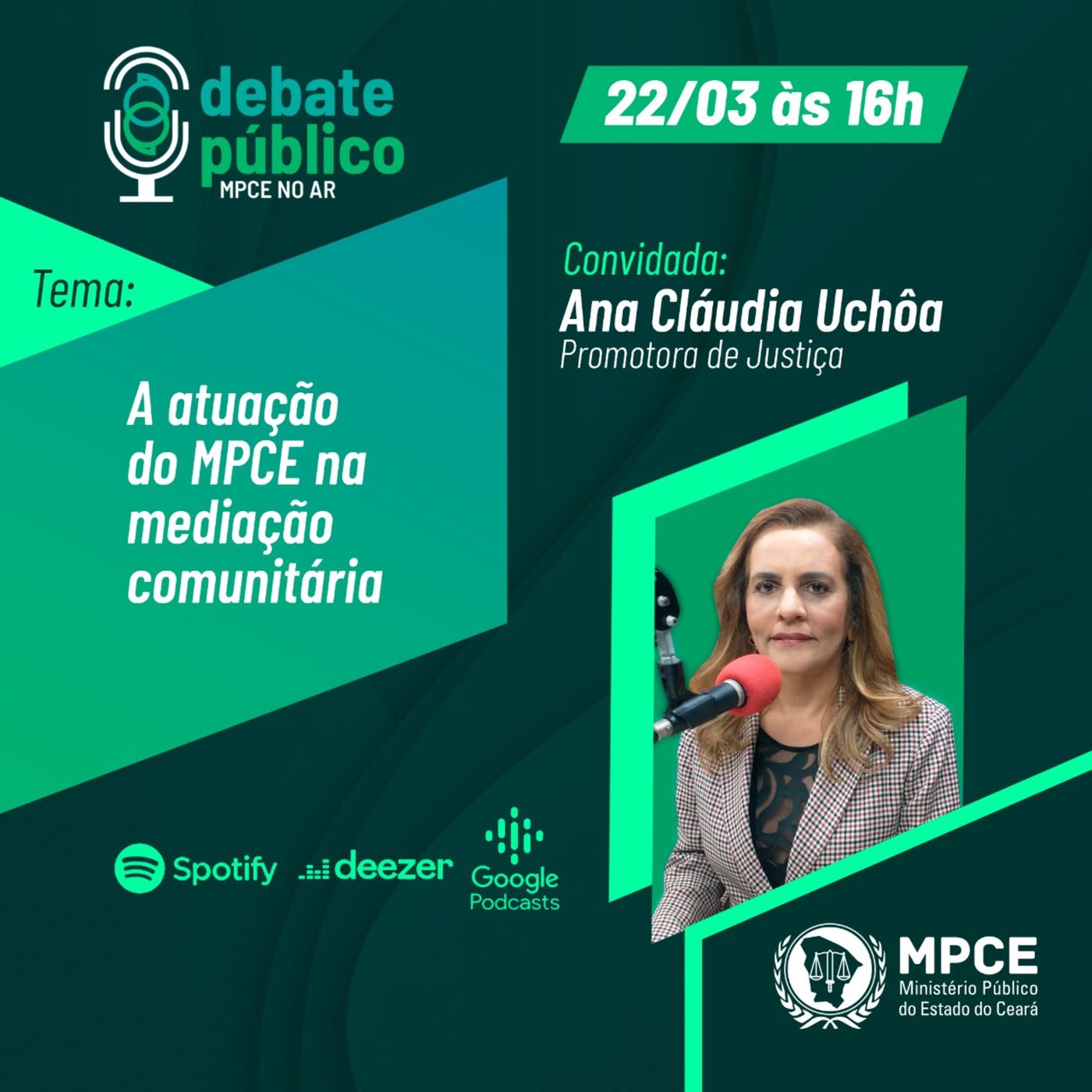 O Debate Público de hoje (22) trata sobre a Atuação do MPCE na Mediação Comunitária. A promotora de Justiça Ana Cláudia Uchôa ressalta como o trabalho tem colaborado para a resolução de diversos conflitos na sociedade.