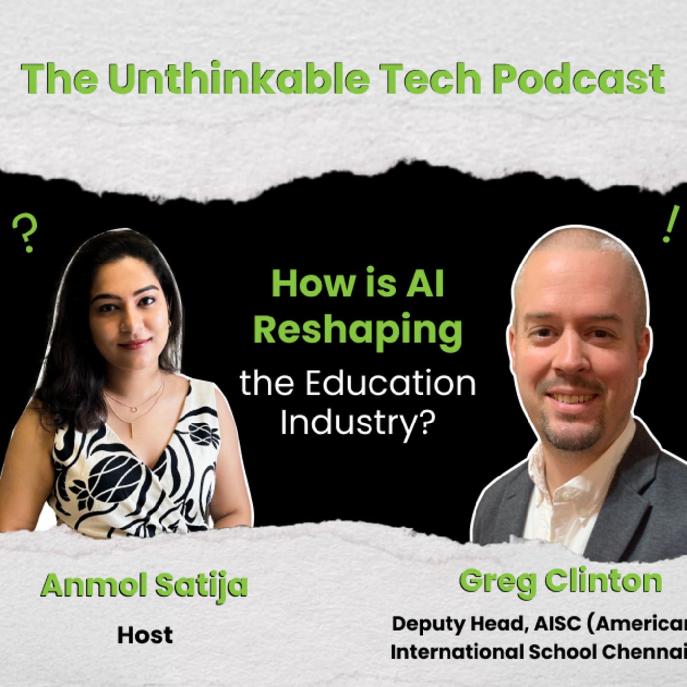 Is AI the future of education? In this compelling episode of The Unthinkable Tech Podcast, host Anmol Satija sits down with Dr. Greg Clinton, Deputy Head - American International School Chennai, to explore the promises and pitfalls of AI in schools. They delve into personalized learning, the role of teachers in an AI-driven world, and the challenges of scaling technology across institutions.
