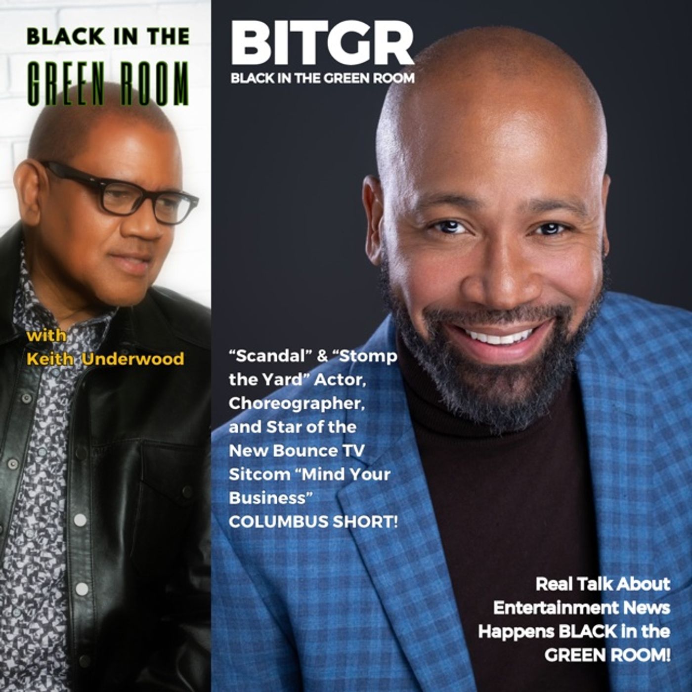 BLACK IN THE GREEN ROOM with Keith L. Underwood welcomes to the room from “Scandal” and “Stomp the Yard” actor, choreographer, and star of the new Bounce TV sitcom “Mind Your Business…” COLUMBUS SHORT