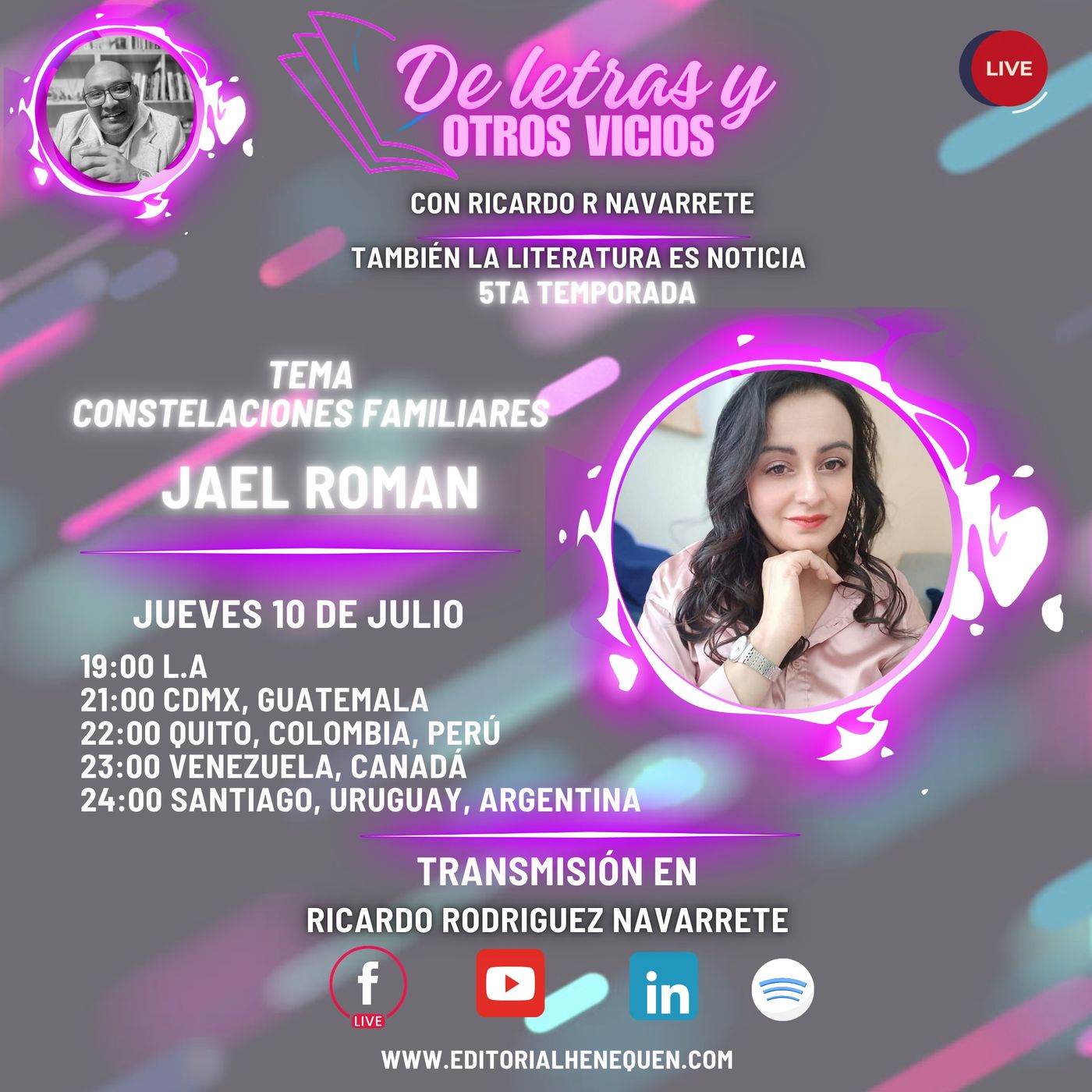 ¿Te has preguntado alguna vez por qué repetimos patrones familiares que no nos benefician? Jael Román, terapeuta experta en constelaciones familiares, nos guiará este jueves en un espacio íntimo y revelador para comprender cómo esas dinámicas ocultas influyen en nuestras relaciones, emociones y decisiones.