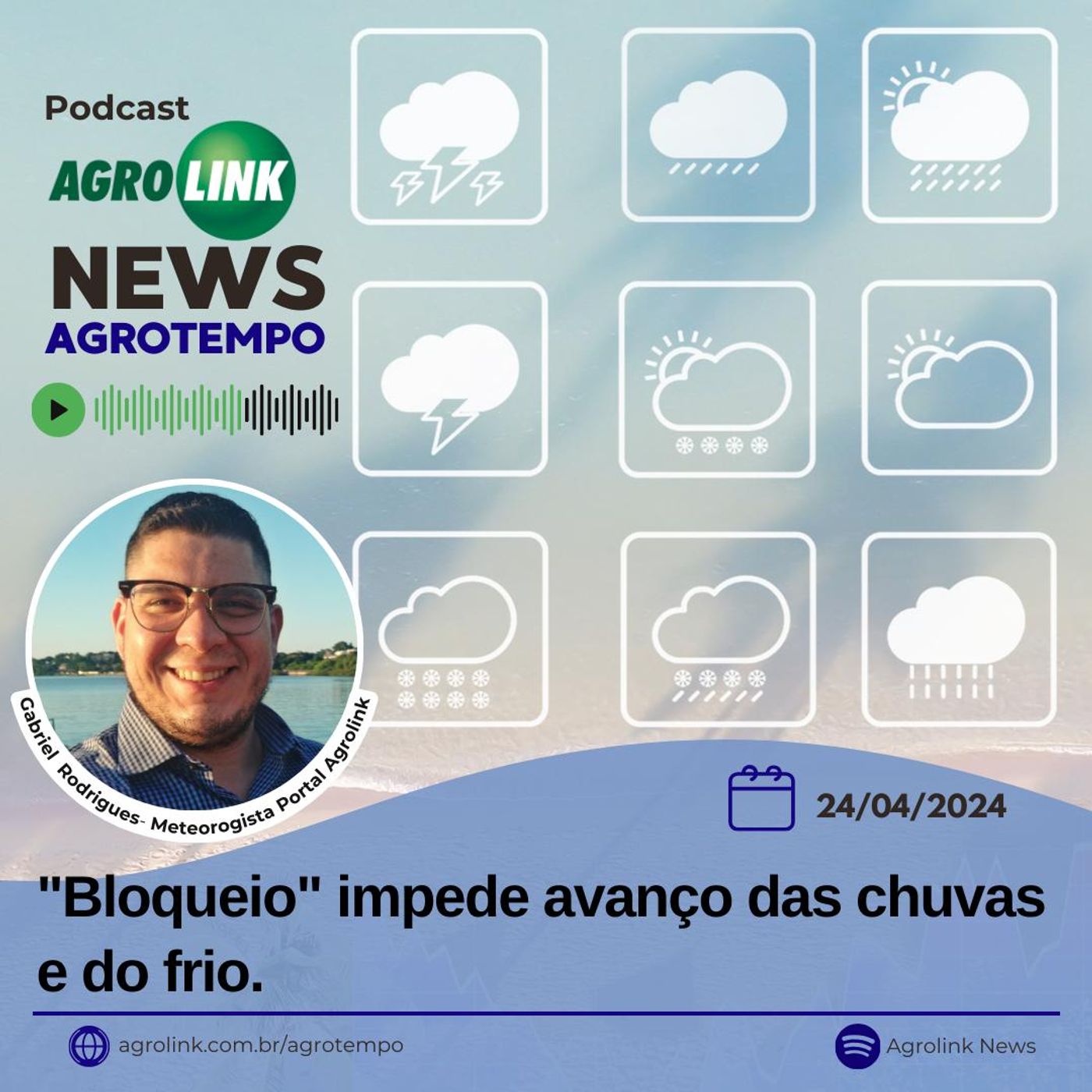 24 de Abril de 2024, a alta pressão continua influenciando as condições de tempo no Brasil central, mantendo o clima mais seco do norte do Paraná até o sudoeste da Bahia.